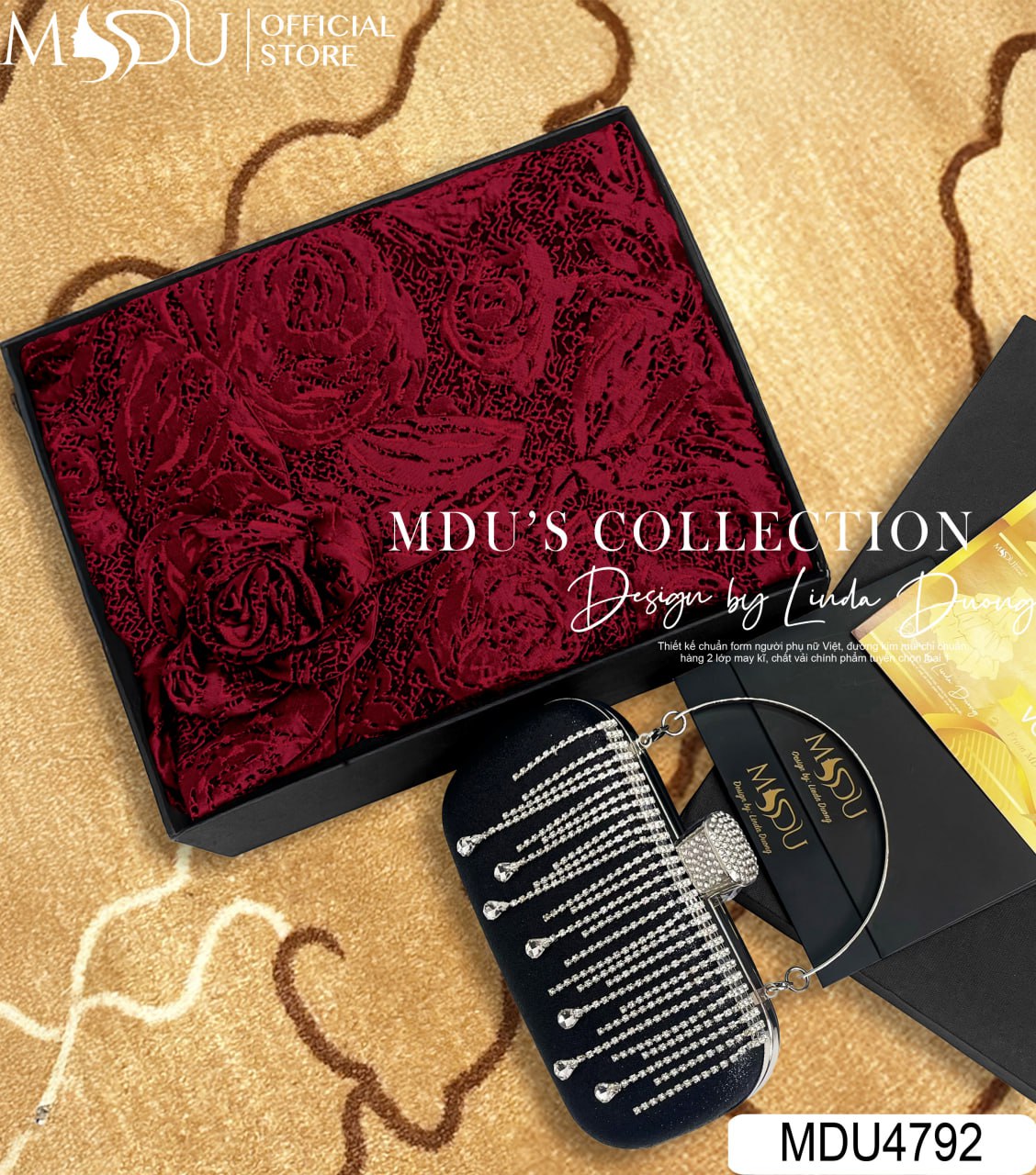 Bề mặt gấm được dập vân hoa nổi tỉ mỉ, mang lại chiều sâu và sự sống động cho tổng thể chiếc váy. MDU4792 là lựa chọn lý tưởng cho những dịp đặc biệt, từ tiệc tối sang trọng đến các sự kiện quan trọng, giúp nàng tỏa sáng với khí chất quý phái, thanh lịch và không thể cưỡng lại.