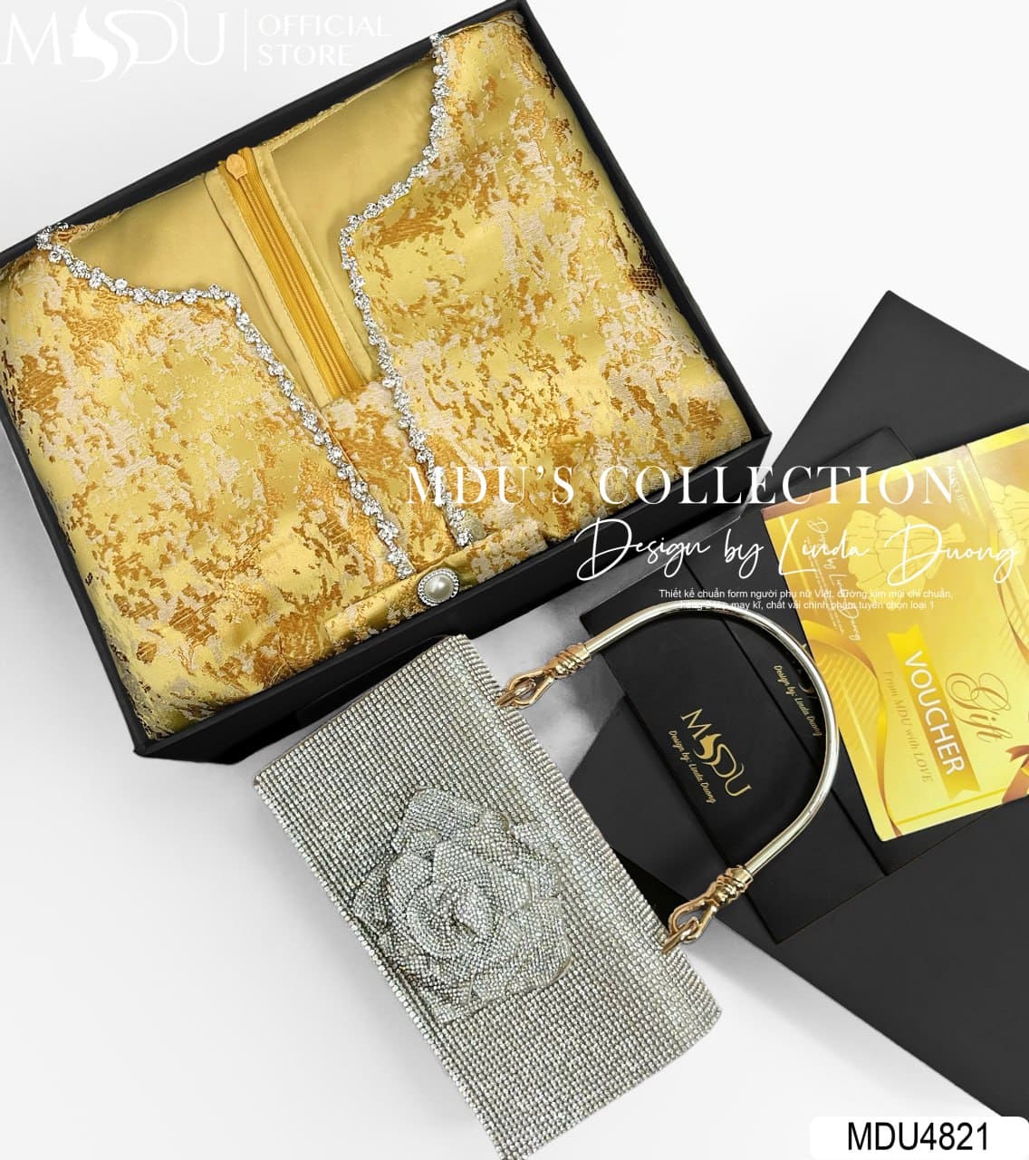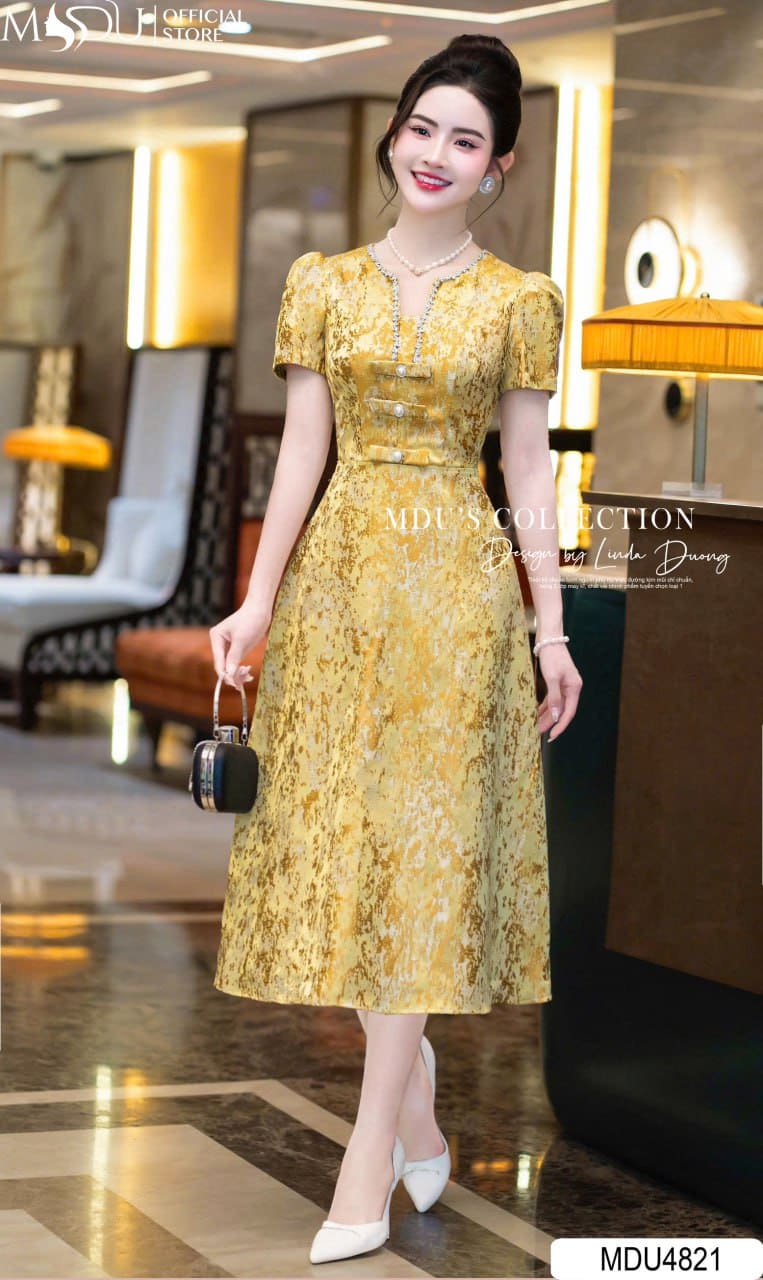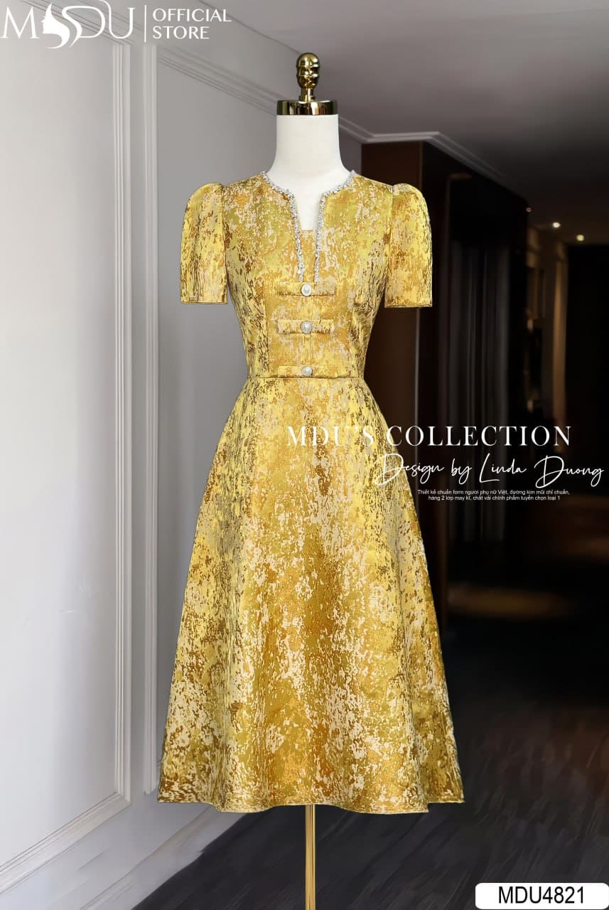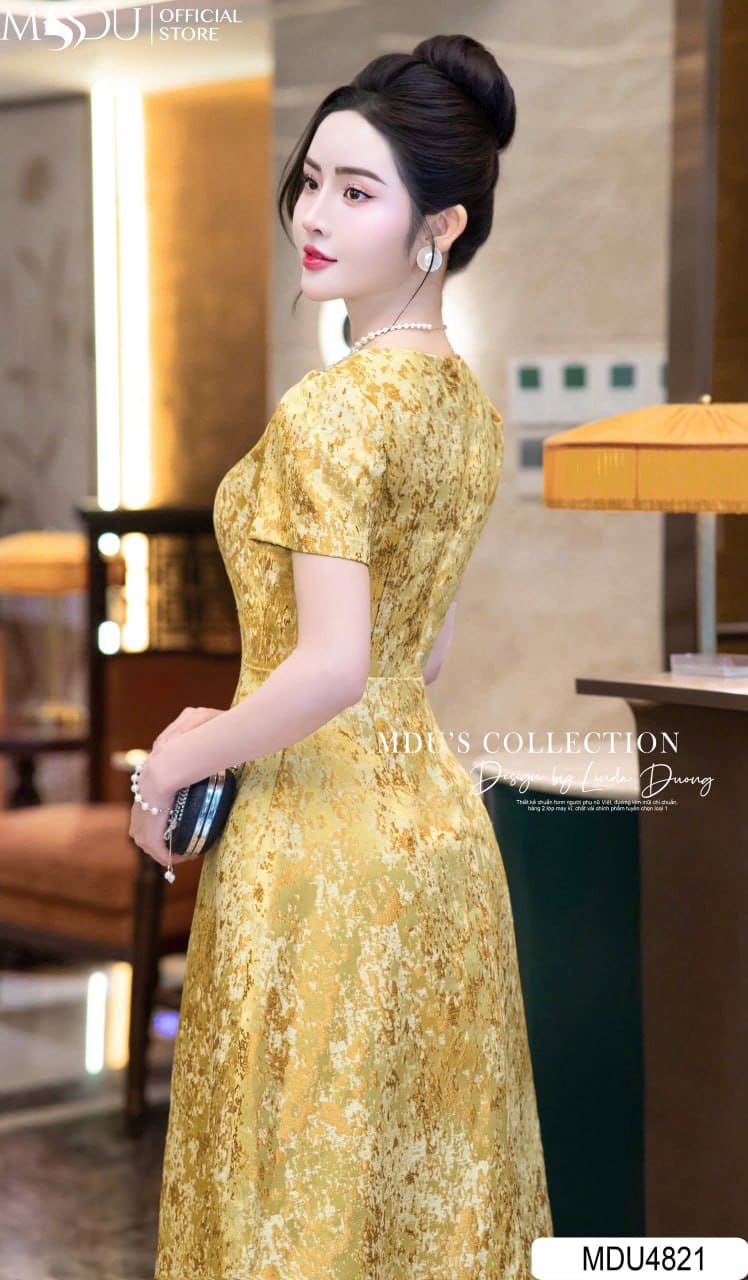 Váy Thiết Kế MDU4821 – Gấm Lụa Cao Cấp Sang Trọng, Tôn Dáng Kiêu Sa