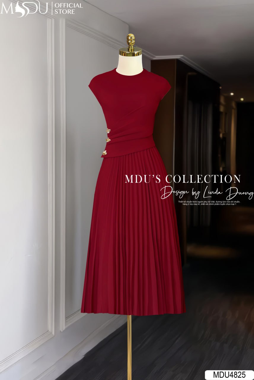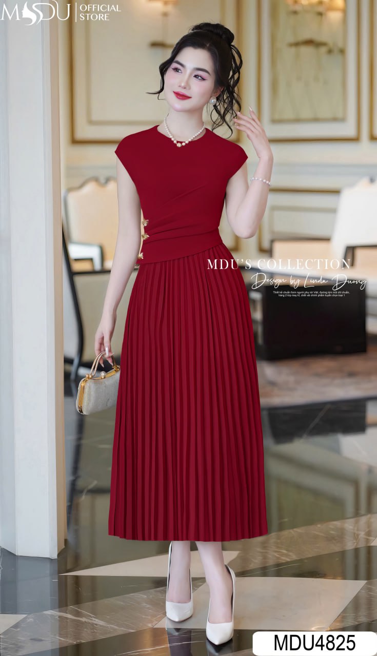 Phần chân váy xếp ly bay nhẹ tạo hiệu ứng bồng bềnh, thướt tha theo từng bước đi, tôn lên nét mềm mại, nữ tính mà vẫn giữ được sự sang trọng. MDU4825 là lựa chọn lý tưởng cho quý cô hiện đại yêu thích sự nền nã, phù hợp từ những buổi gặp gỡ quan trọng đến các sự kiện đẳng cấp, giúp nàng tự tin tỏa sáng với khí chất thanh lịch và kiêu sa.
