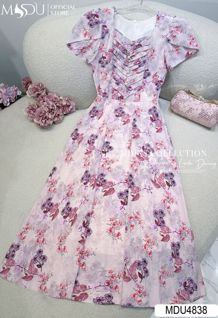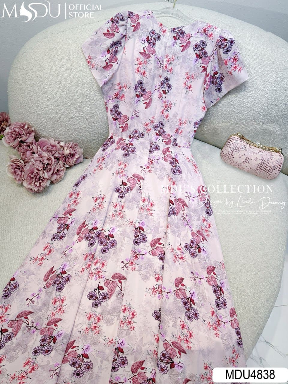Váy Thiết Kế MDU4838 – Hoa Tím Hồng Đường Dài Xòe