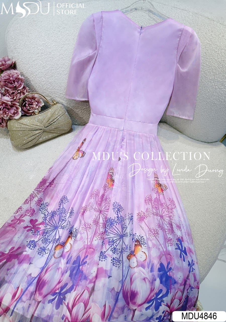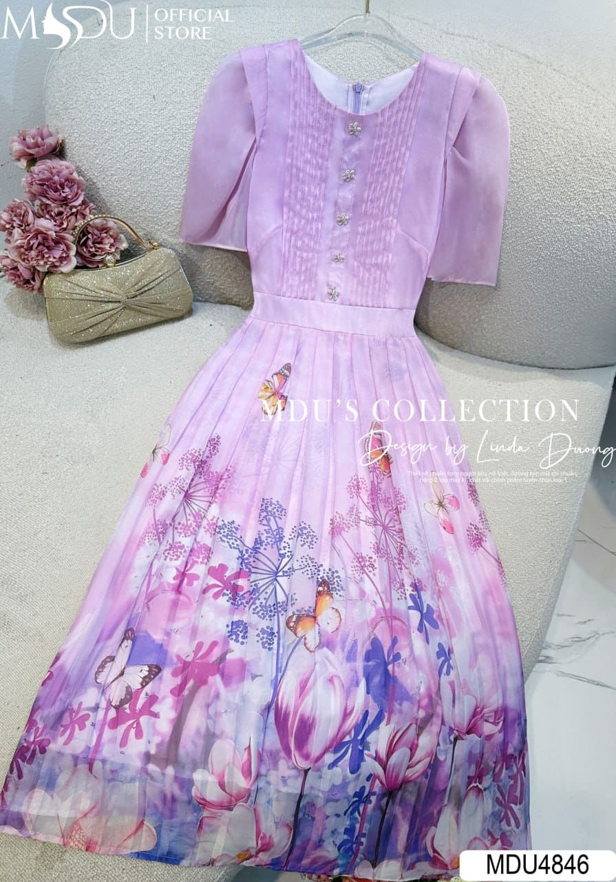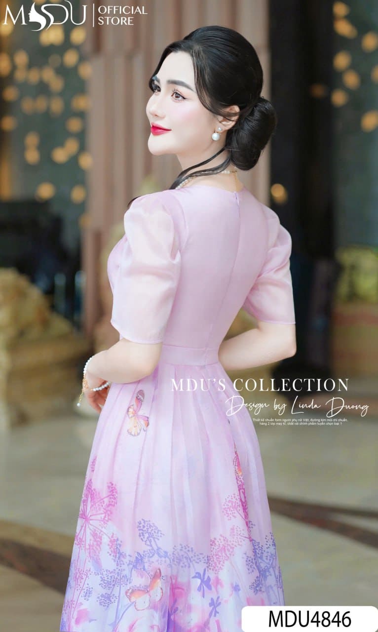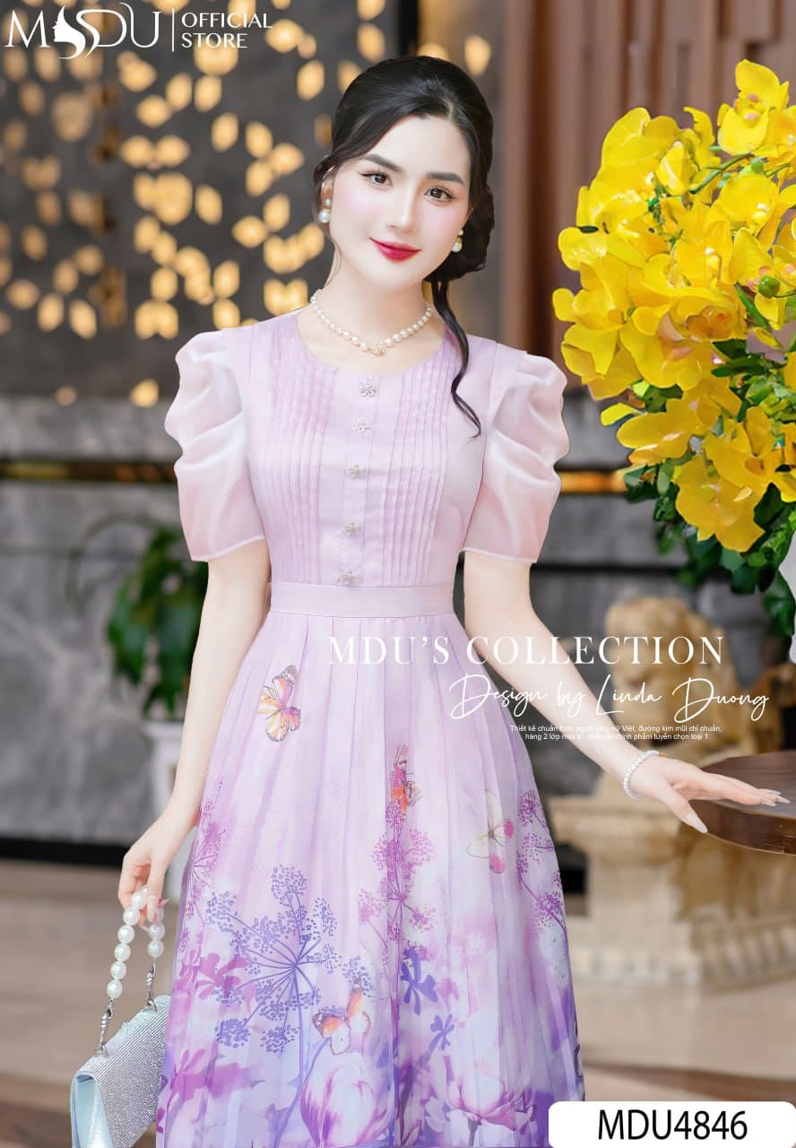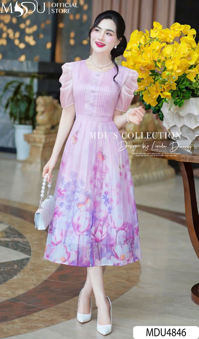 Váy Thiết Kế MDU4846 – Tơ Óng Hoa Thanh Lịch