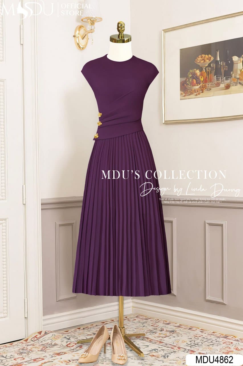 Váy Thiết Kế MDU4862 – Gold Nhật Khuy Ngọc Thanh Lịch