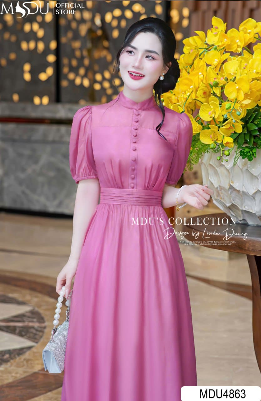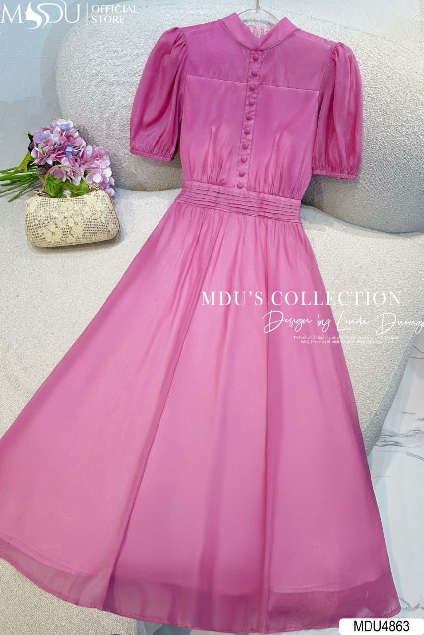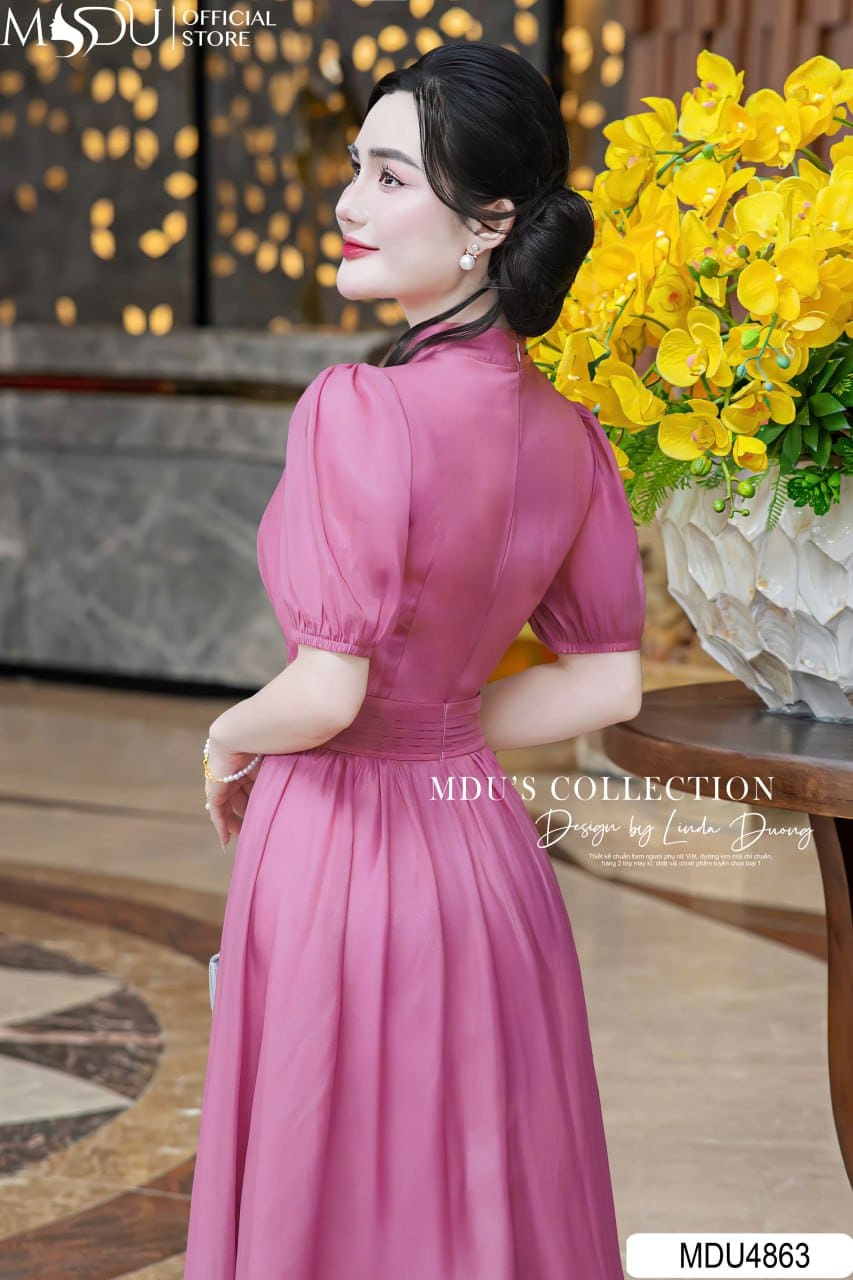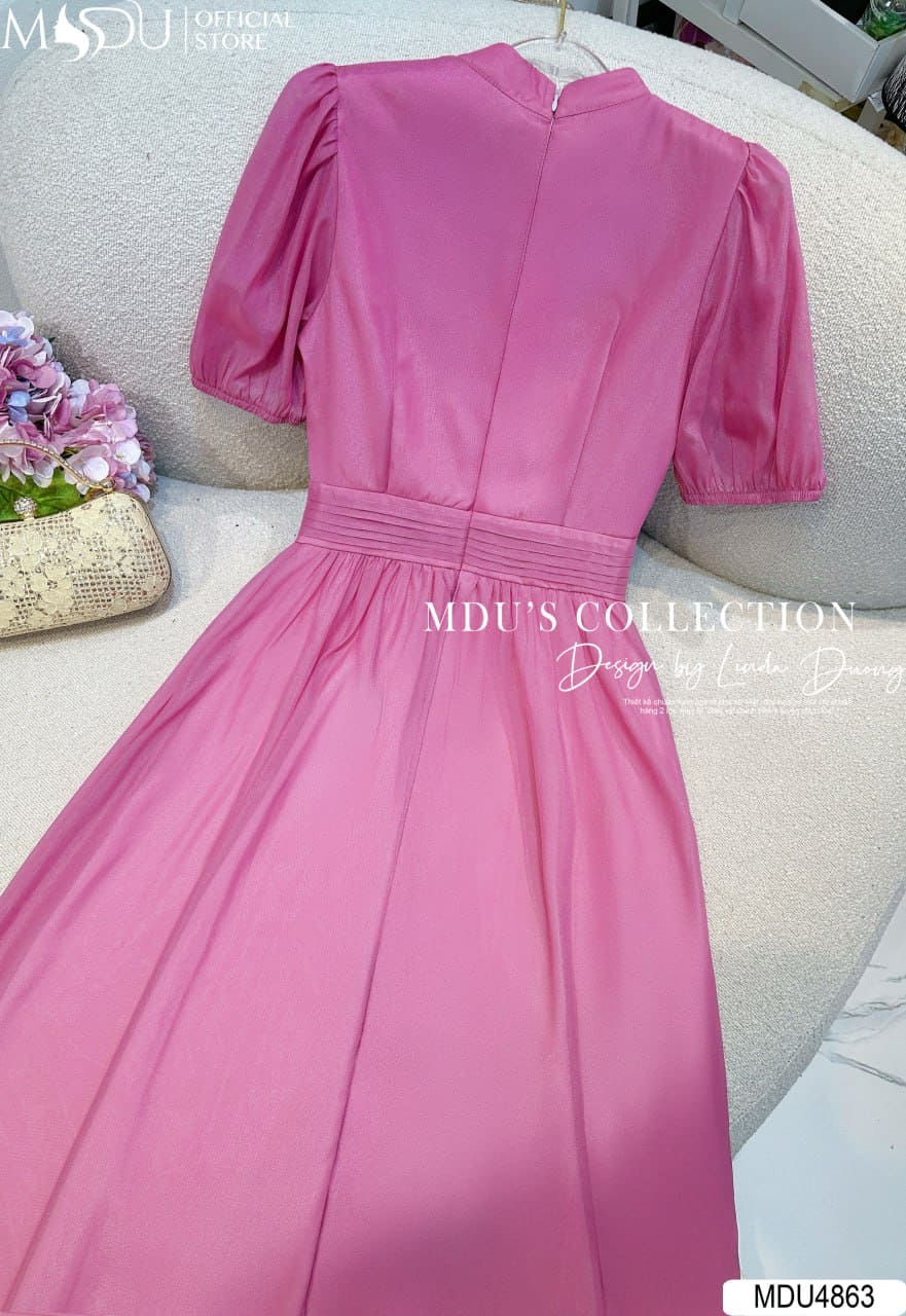 Váy Thiết Kế MDU4863 – Tơ Óng Cổ Đứng Dáng Xòe Thanh Nhã