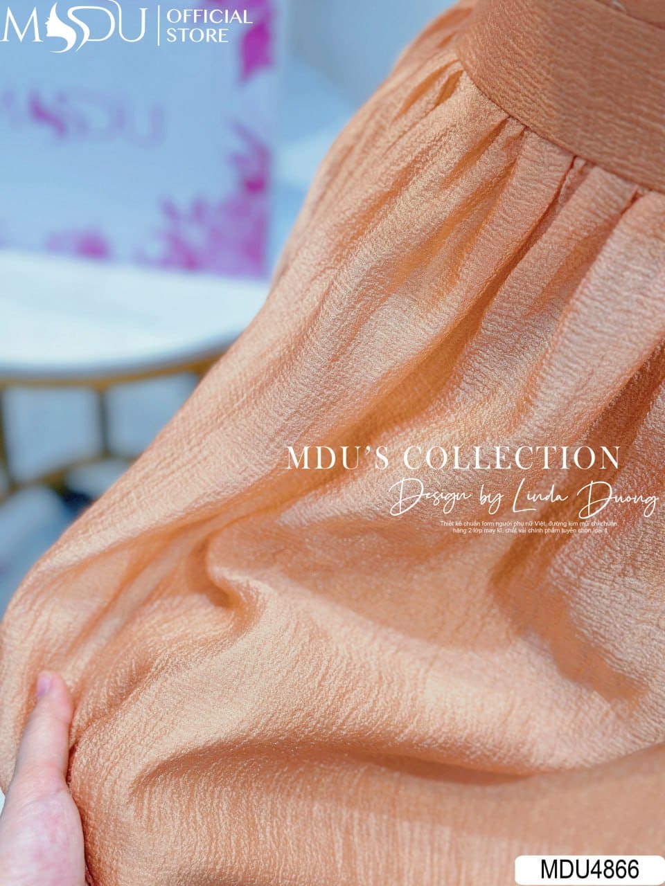 MDU Fashion ra mắt thiết kế MDU4866 – một tuyệt tác dành cho những quý cô yêu vẻ đẹp thanh thoát pha chút cổ điển. Chất tơ bọt cao cấp mềm nhẹ, gam cam đào thời thượng, chi tiết xẻ giọt lệ duyên dáng và nơ cổ liền váy tạo nên tổng thể nhẹ nhàng, tinh tế nhưng không kém phần cuốn hút.