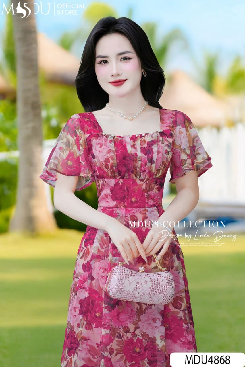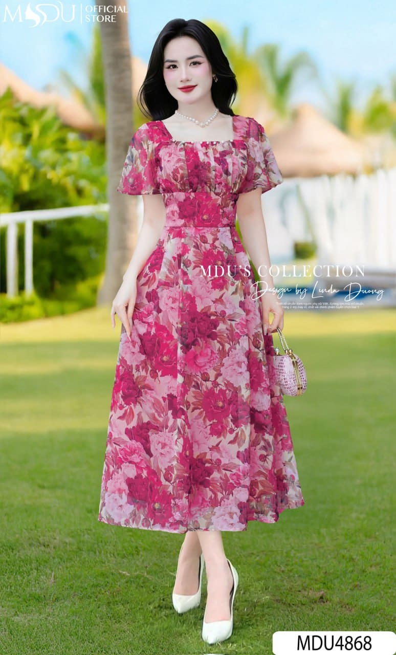 Váy Thiết Kế MDU4868 – Tơ Xước Hoa Mẫu Đơn Lãng Mạn