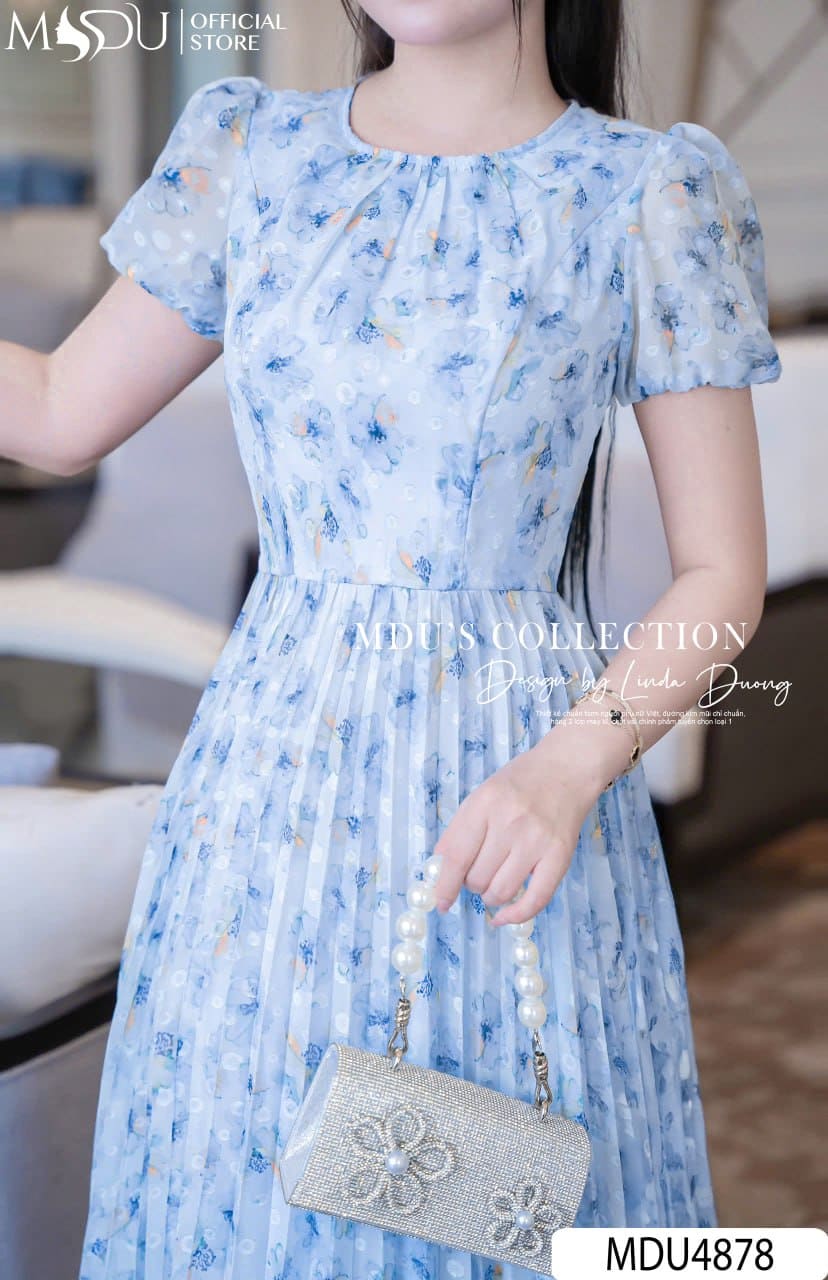 Váy Thiết Kế MDU4878 – Tơ Ép Cao Cấp Dáng Xòe Lãng Mạn