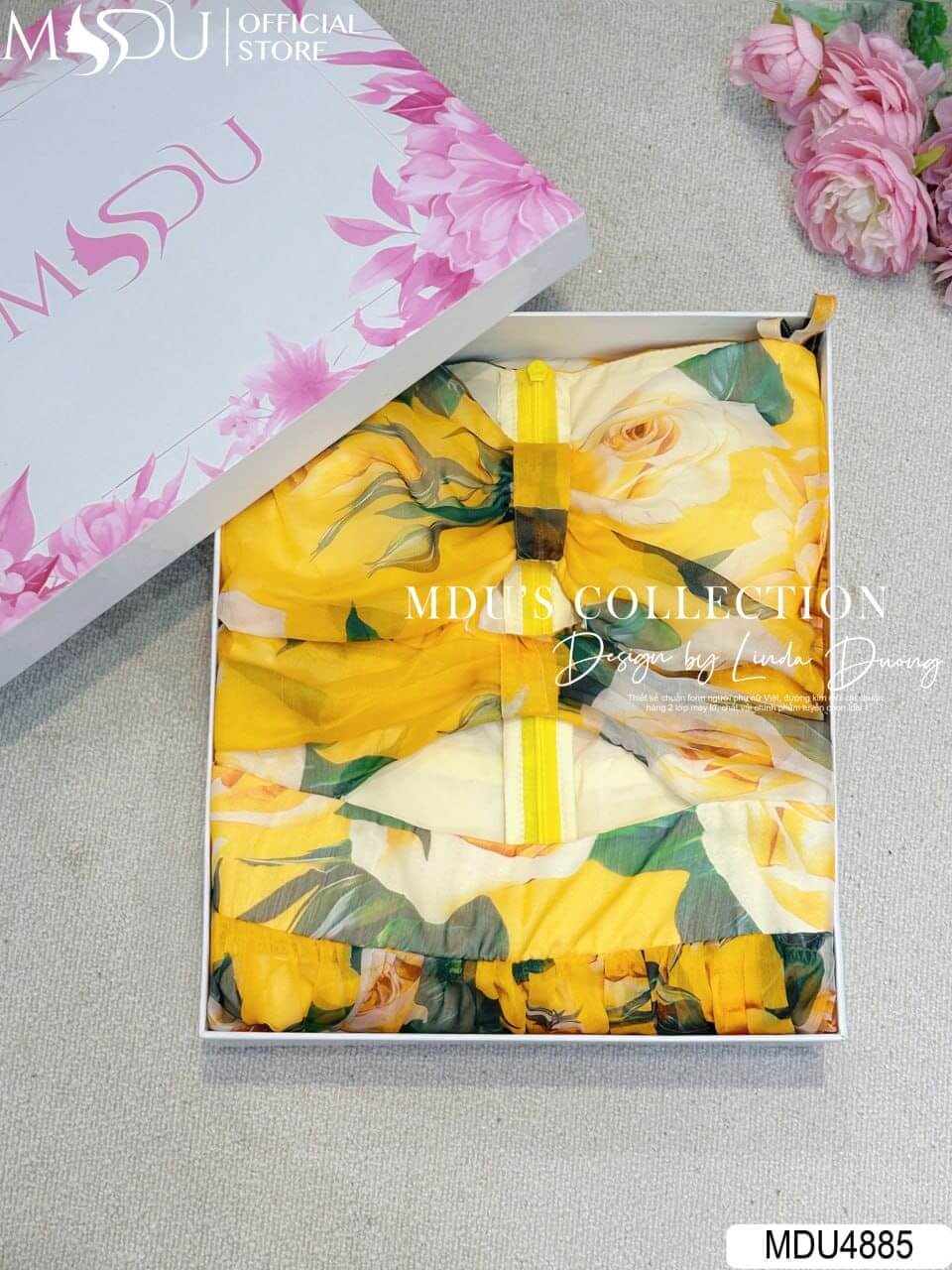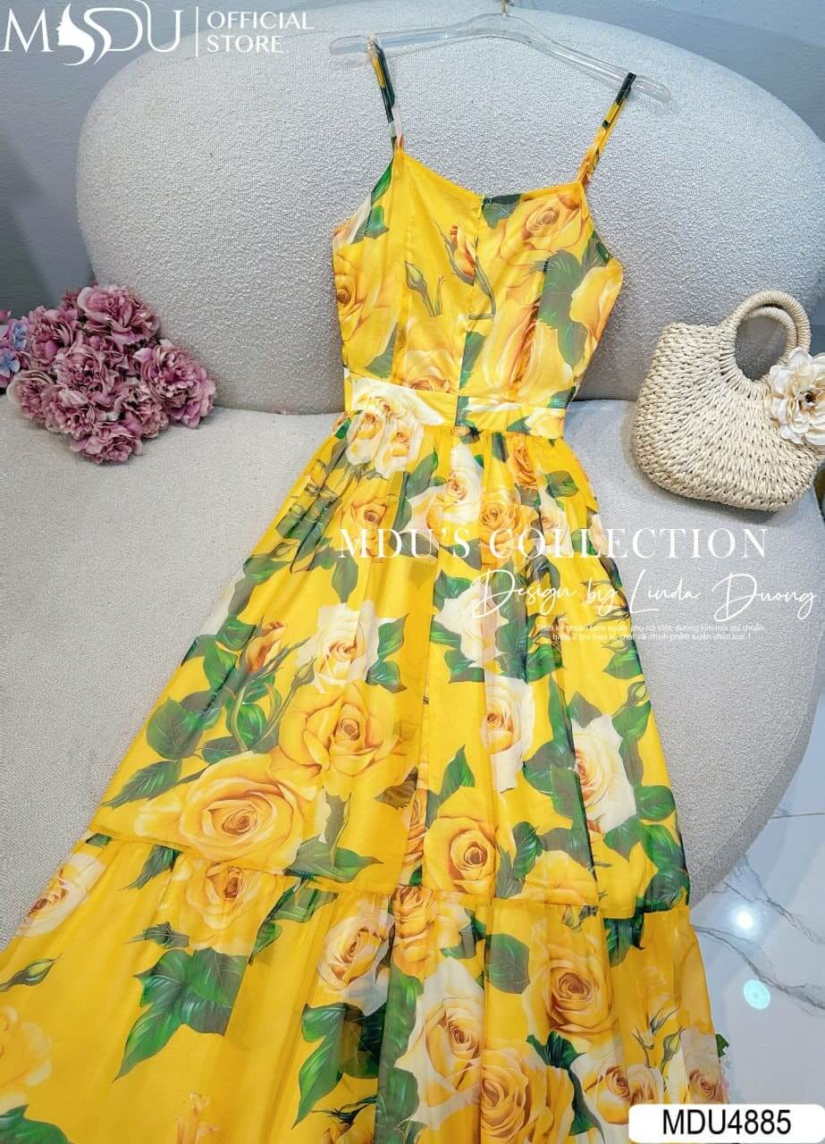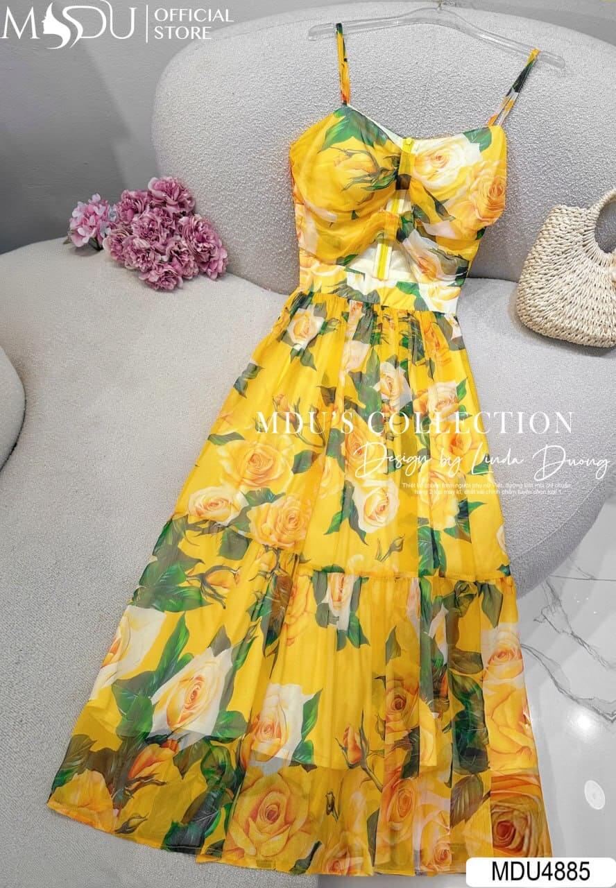 Váy Thiết Kế MDU4885 – Vàng Rực Hai Dây Cut-Out, Trẻ Trung Và Bay Bổng Đầy Gợi Cảm