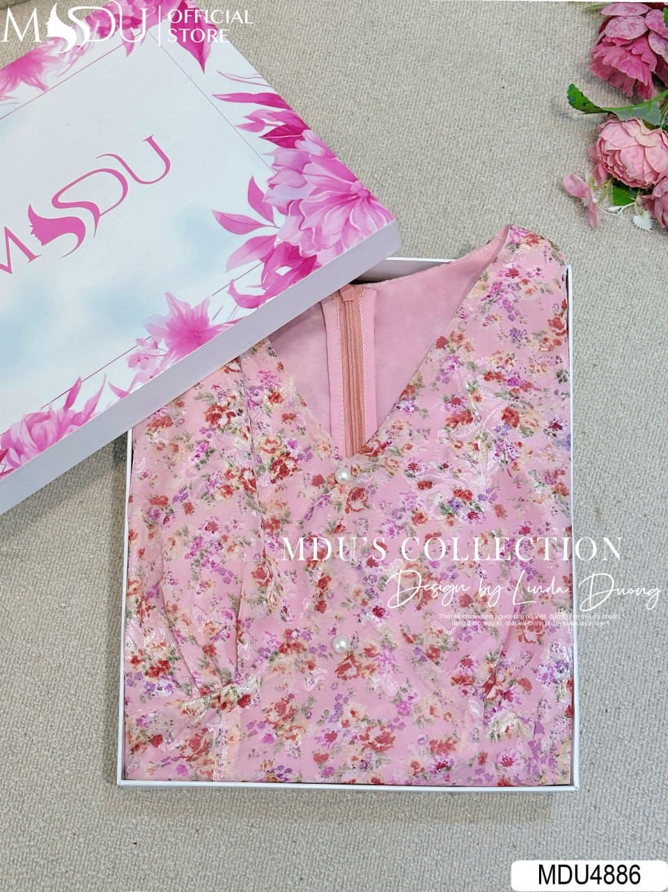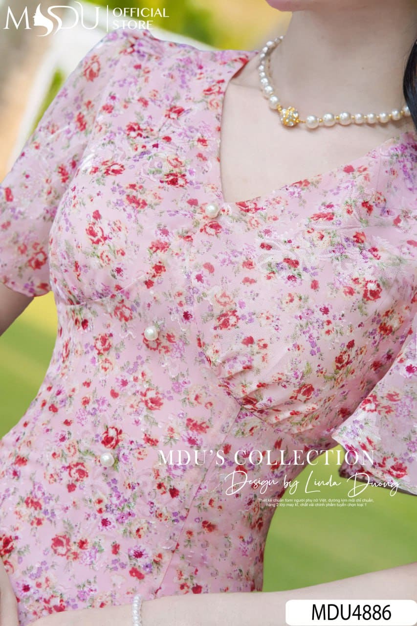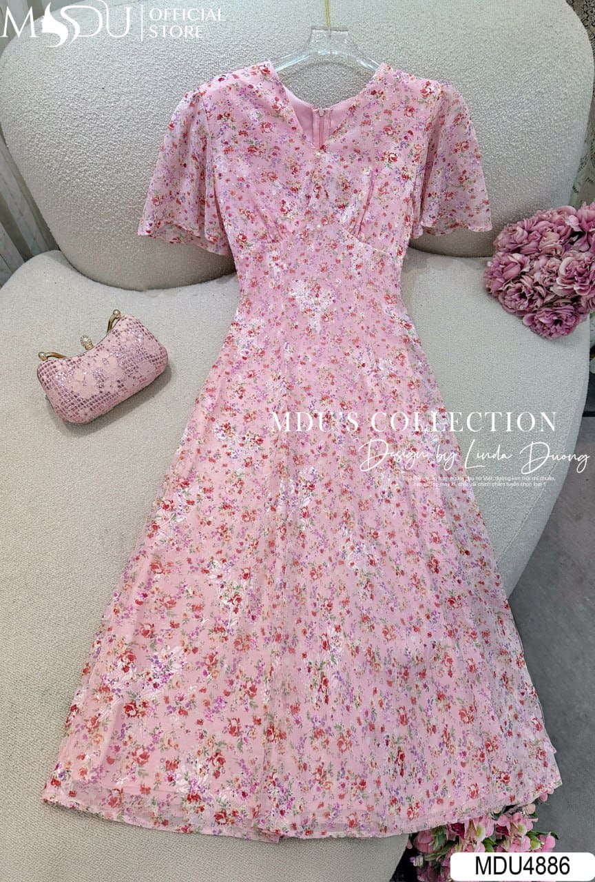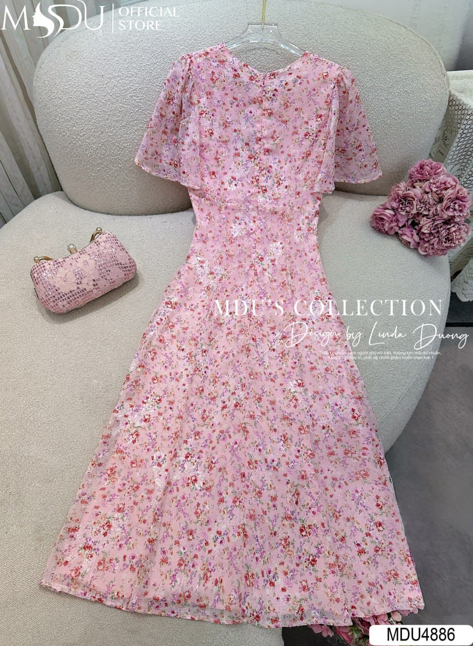 Váy MDU4886 được làm từ tơ ép cao cấp với bề mặt vải nổi những cánh hoa nhí trên nền hồng pastel ngọt ngào, vừa tôn da vừa mang lại sự bay bổng, dịu dàng cho từng chuyển động. Váy không co giãn, thiết kế 2 lớp với lớp lót lụa Habutai mềm mại, khóa giấu tinh tế và đường may tỉ mỉ, đảm bảo phom dáng hoàn hảo và thoải mái khi mặc.