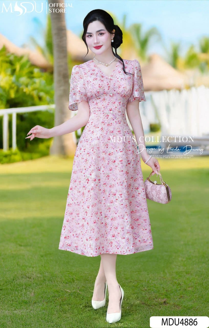 Váy Thiết Kế MDU4886 – Tơ Ép Hoa Nhí Dáng Xòe Dịu Dàng