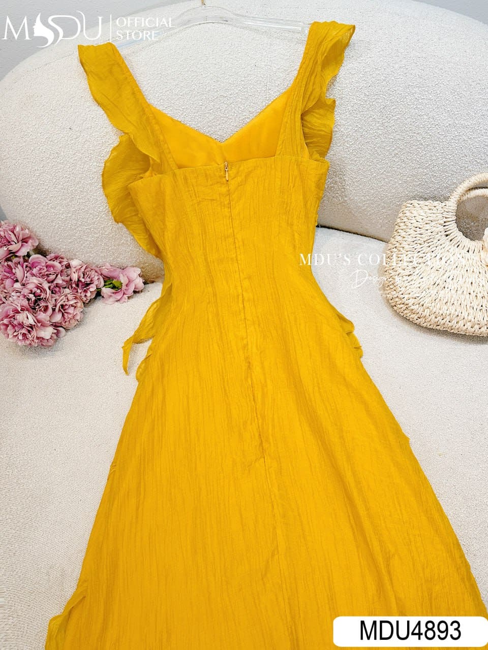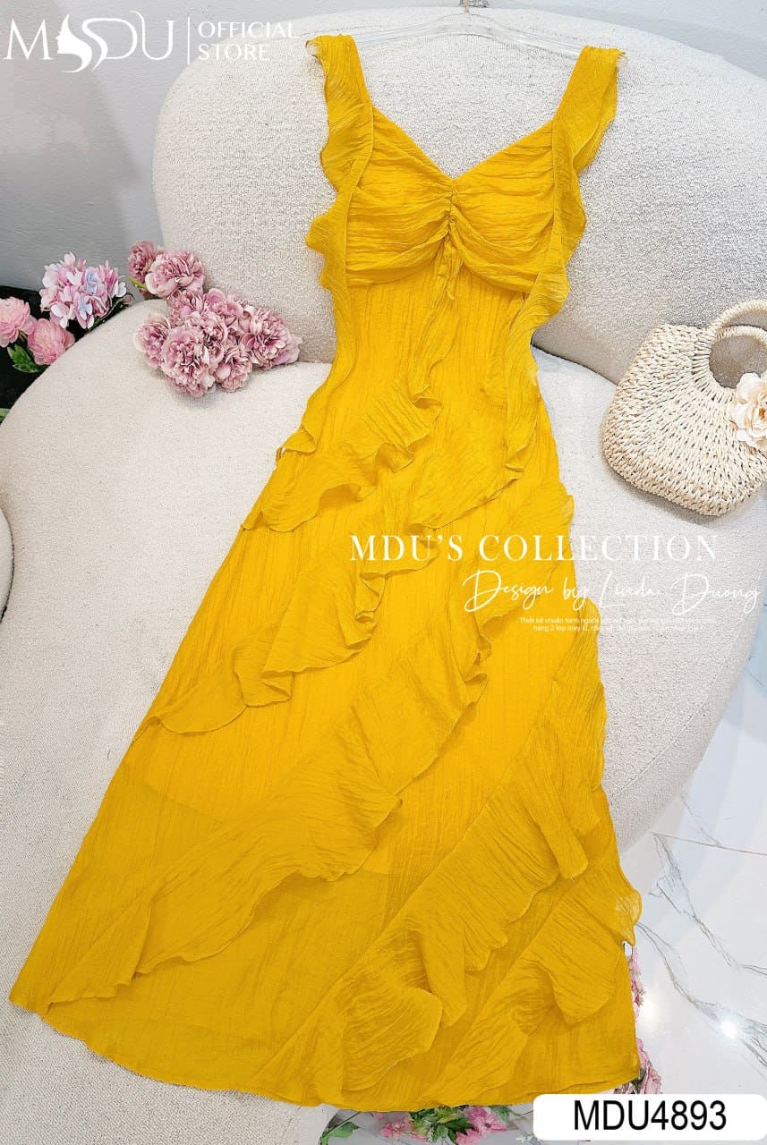 Váy Thiết Kế MDU4893 – Vàng Rực Rỡ Tầng Bèo Xòe Nữ Tính
