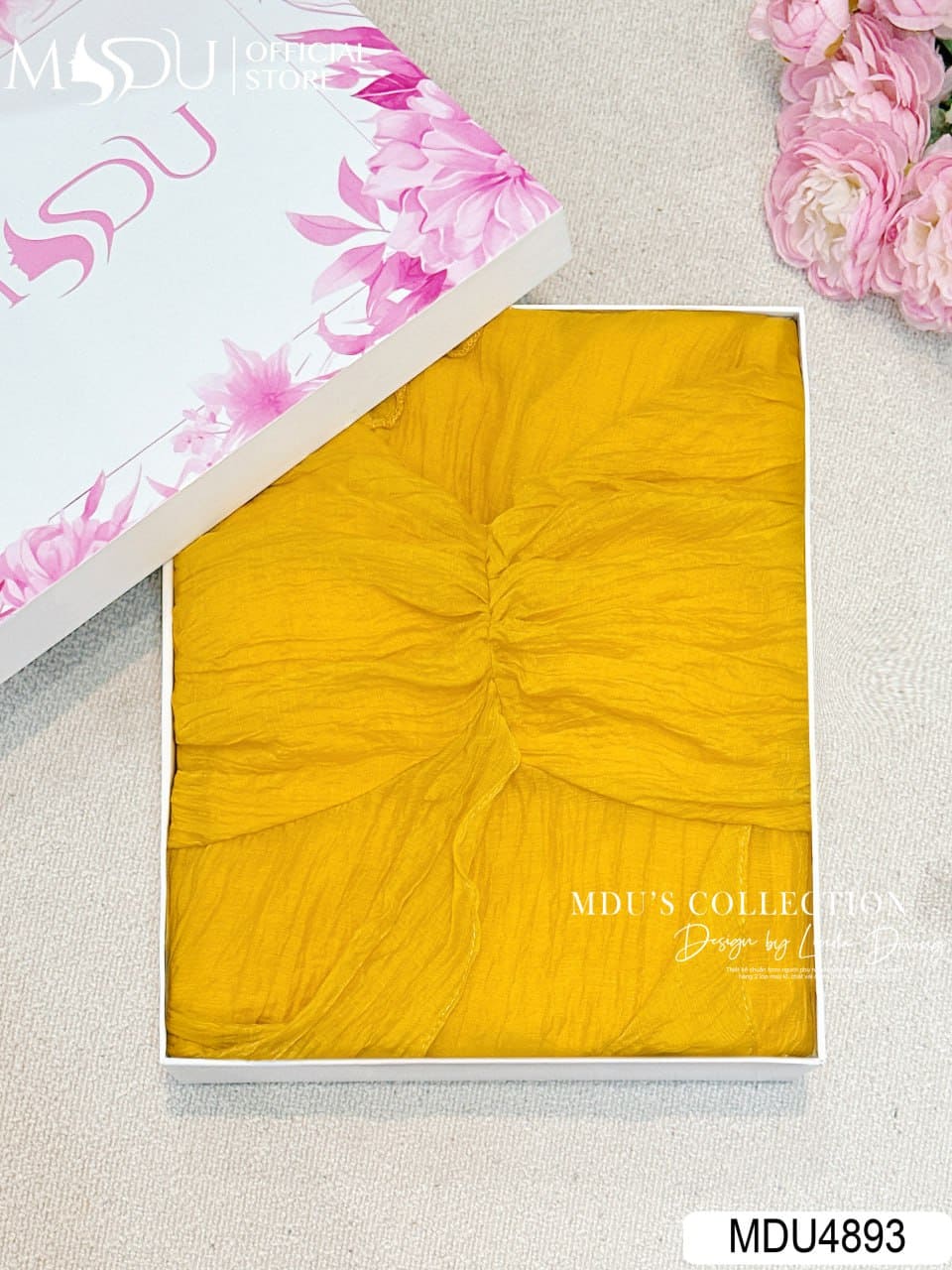 Váy MDU4893 được may từ tơ Crepe cao cấp với vật chất nhẹ nhàng đặc biệt, tạo cảm giác mềm mại và thoải mái khi mặc. Gam màu vàng tươi sáng làm phấn lên bóng trẻ trung, hiện đại. Váy không co giãn, được 2 lớp bảo vệ với keo lót bên trong, giữ khóa tinh tế và đường may kỹ lưỡng, đảm bảo phong cách hoàn hảo và tiện nghi.