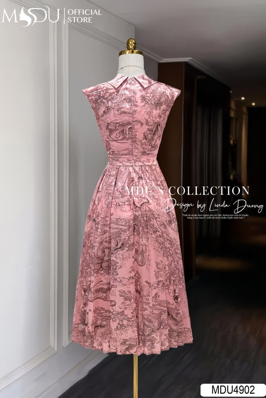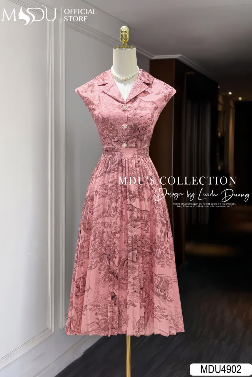 MDU4902 Thiết kế cổ vest phối tay hến giúp phần thân trên gọn gàng, kín đáo mà vẫn giữ được vẻ hiện đại. Chiết eo cao kết hợp cùng phần chân váy xếp ly quạt bay bổng, tạo chuyển động mềm mại theo từng bước đi. Hàng cúc ngọc phía trước được đính khéo léo như một điểm chấm phá, tôn lên sự duyên dáng và thanh lịch của người mặc.