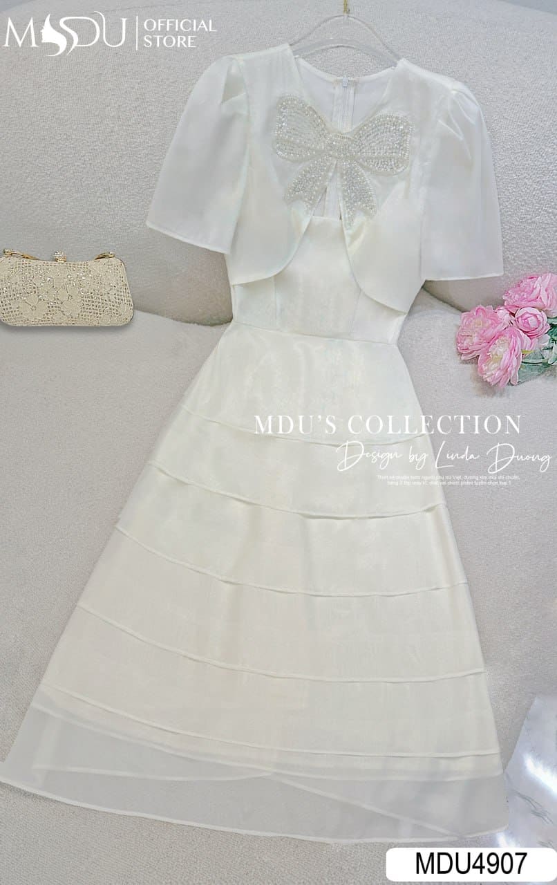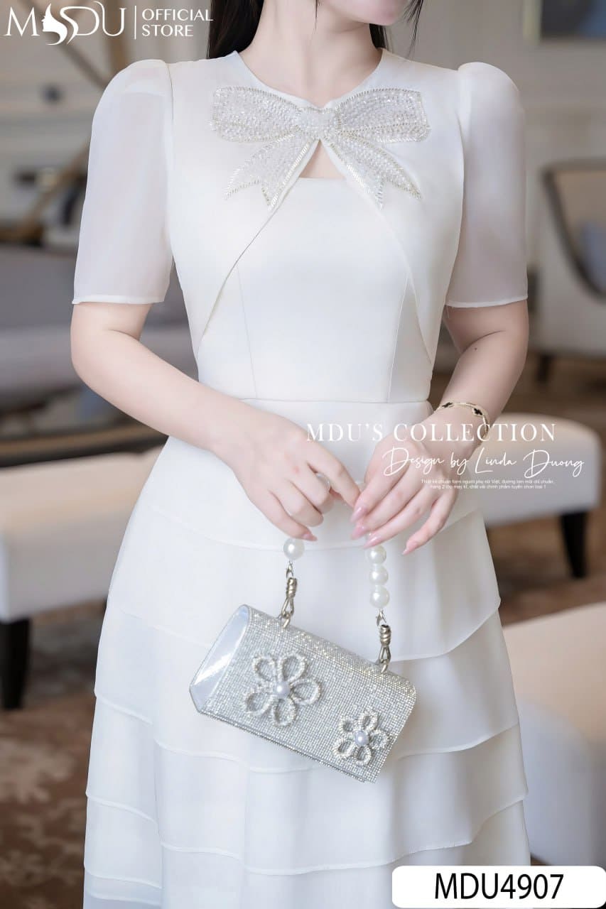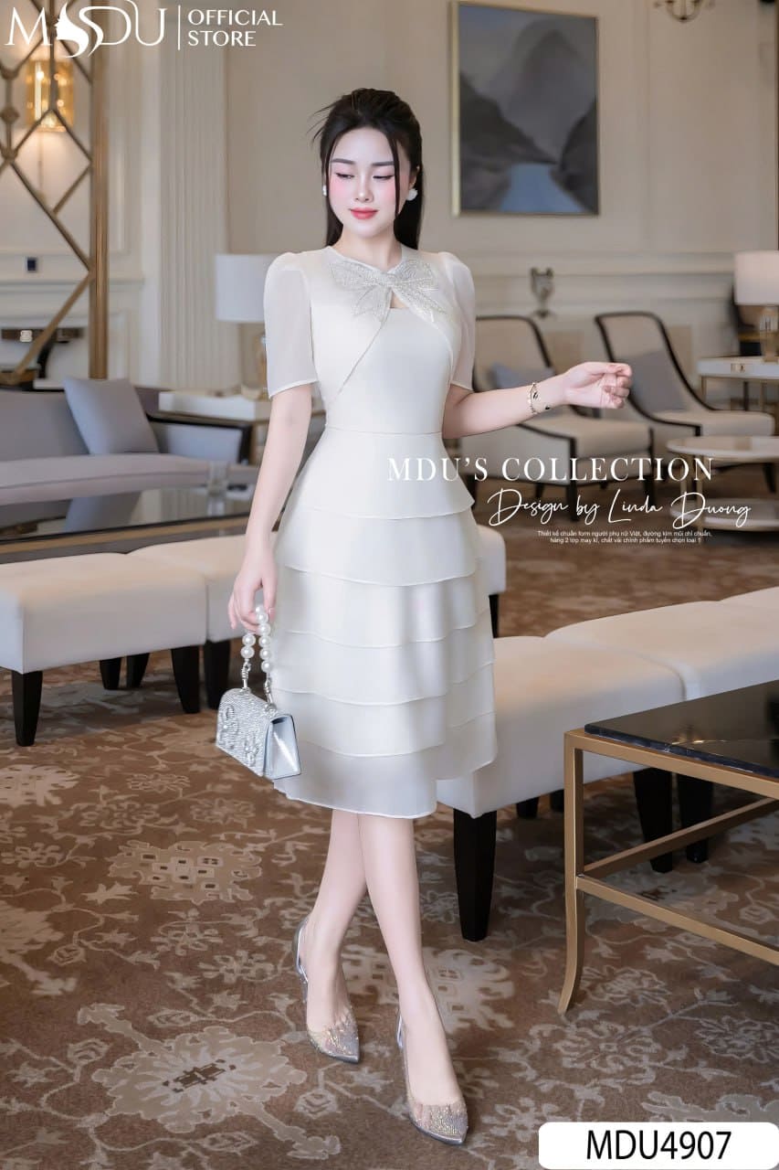 Váy Thiết Kế MDU4907 – Nơ Đá Sang Trọng, Tầng Xòe Bồng Bềnh Và Thanh Lịch