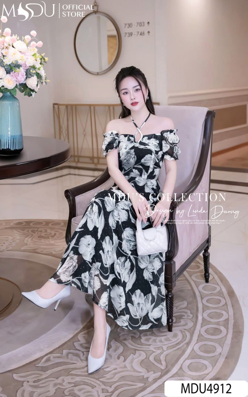 Váy Thiết Kế MDU4912 – Trễ Vai Đính Đá Lấp Lánh, Gợi Cảm Và Bay Bổng