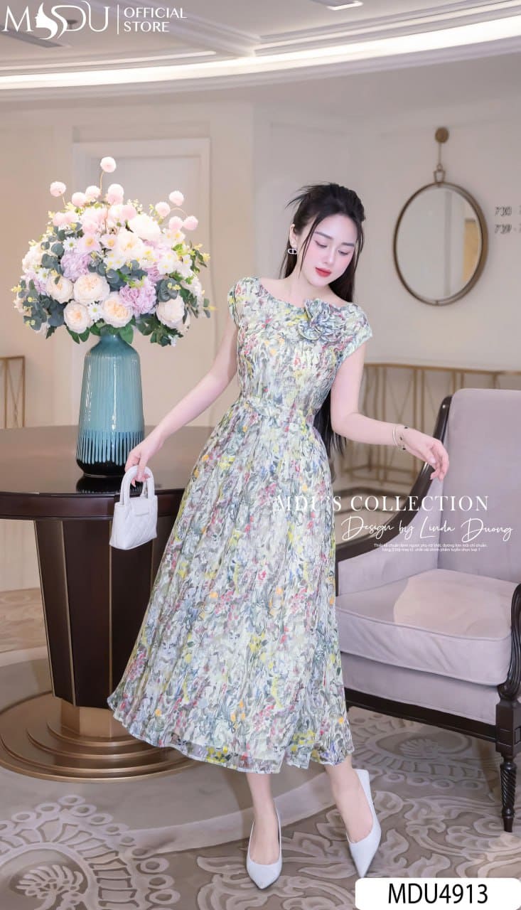MDU Fashion trân trọng giới thiệu MDU4913 – thiết kế mang hơi thở hiện đại nhưng vẫn giữ trọn nét duyên thanh lịch. Chất liệu tơ xước cao cấp với bề mặt sần nhẹ tự nhiên cùng họa tiết hoa độc đáo, kết hợp hài hòa với dáng váy dài xòe nhẹ, cổ thuyền tinh tế và tay hến trẻ trung. Điểm nhấn hoa đính ở vai được chế tác thủ công cố định, như một bông hoa nhỏ cài trên vai nàng, khiến ánh nhìn chẳng thể rời. Một thiết kế mềm mại, mát lành, lý tưởng cho nàng yêu cái đẹp một cách trọn vẹn và tinh tế.