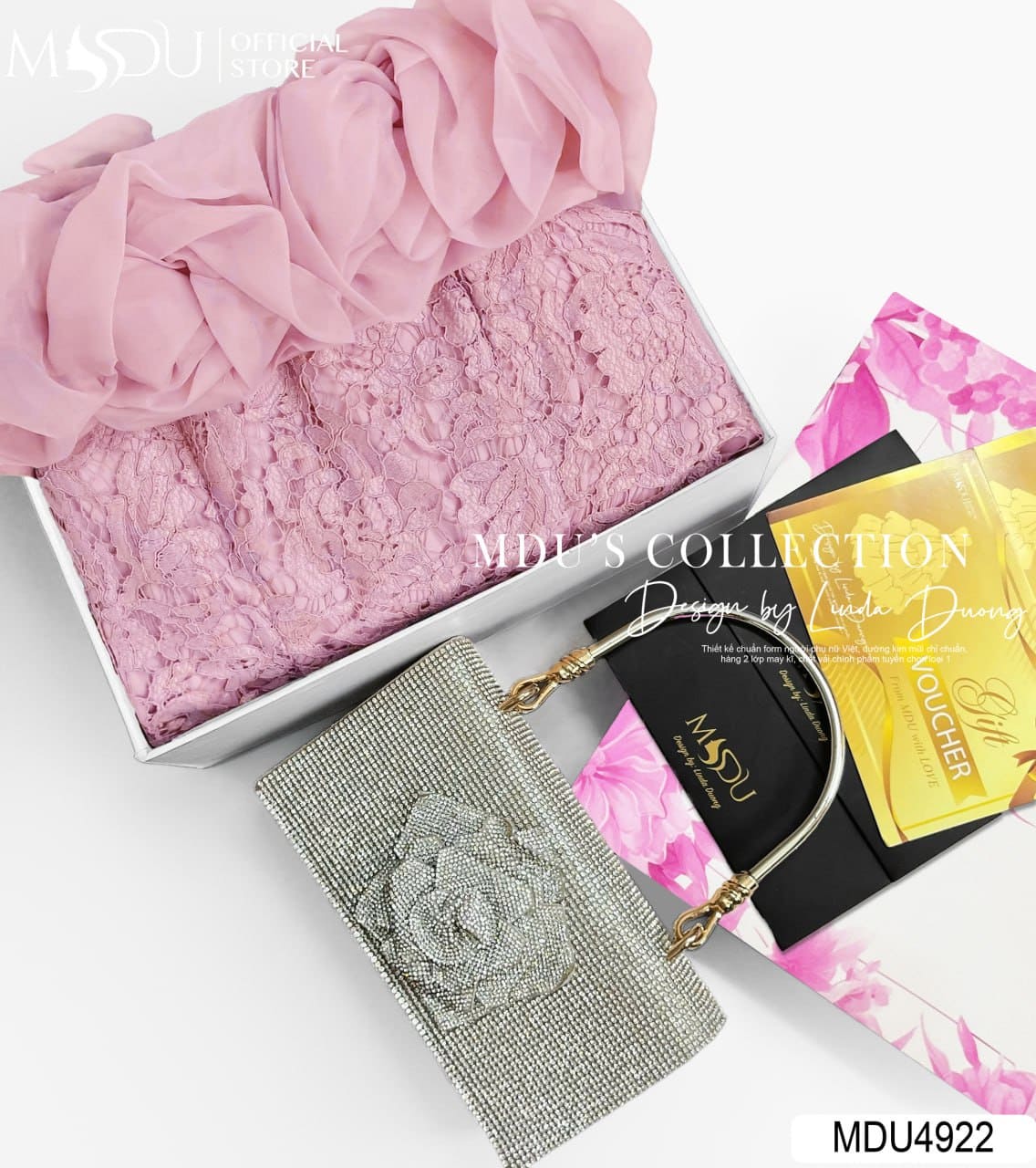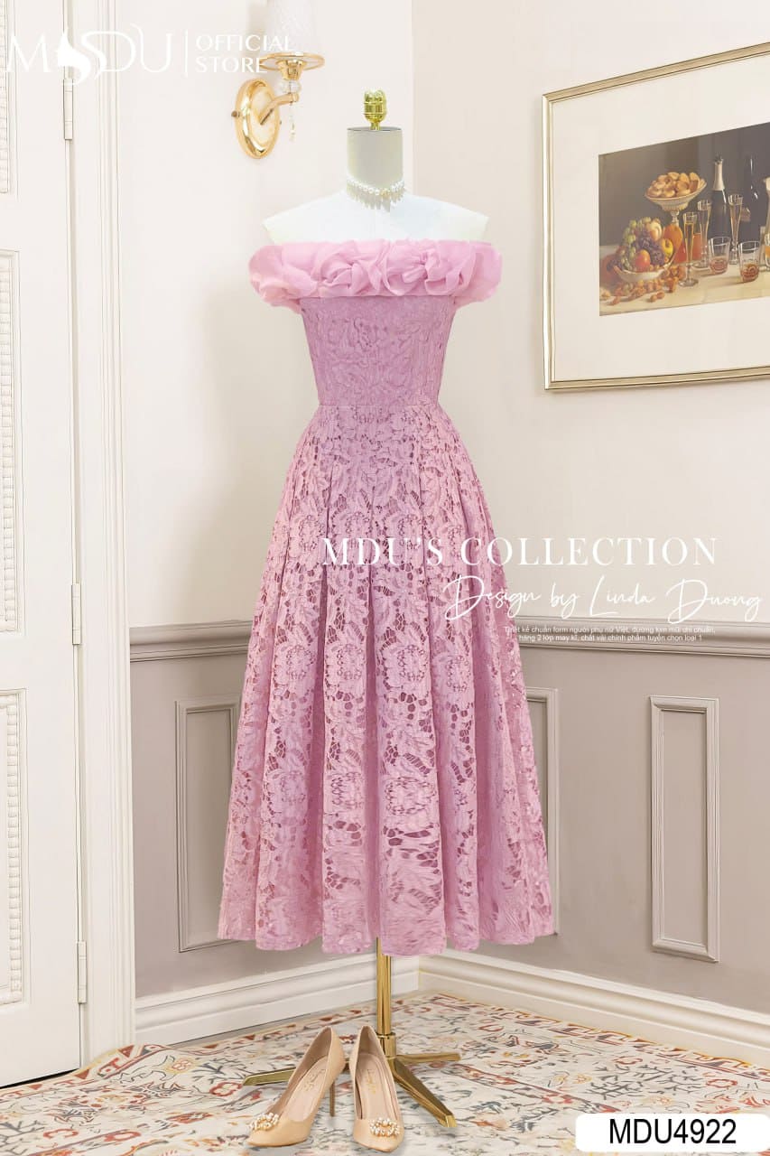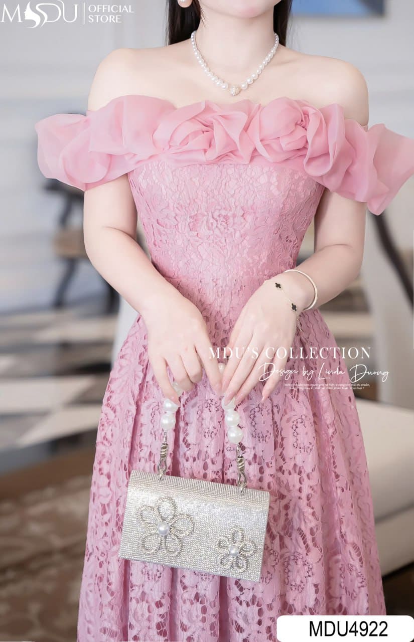 MDU Fashion giới thiệu MDU4922, thiết kế váy sang trọng với sự kết hợp hoàn hảo giữa ren hoa nổi và tơ organza cao cấp. Chất liệu ren dày dặn, mềm mịn khi chạm tay, phủ kín toàn bộ váy, tạo nên vẻ ngoài quý phái và tinh tế. Tơ organza mềm mại và trong suốt mang lại độ bồng bềnh tự nhiên, làm tôn lên những đường cong cơ thể, đặc biệt là phần vai và xương quai xanh đầy quyến rũ.