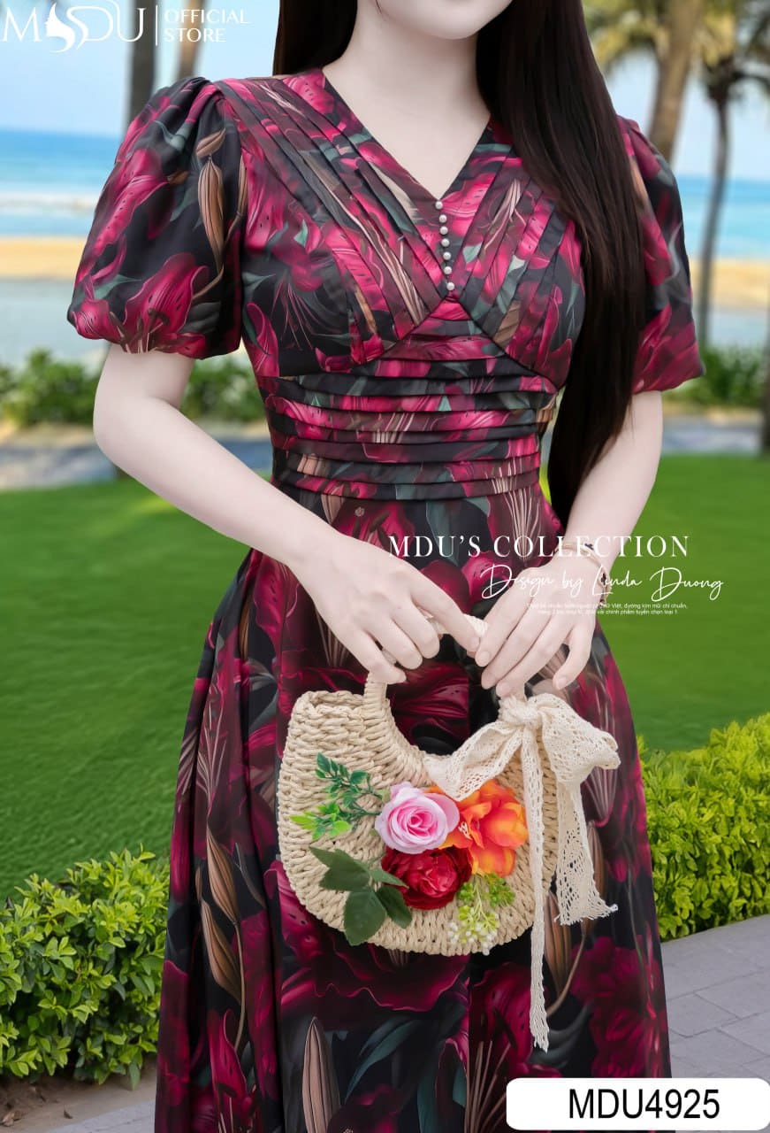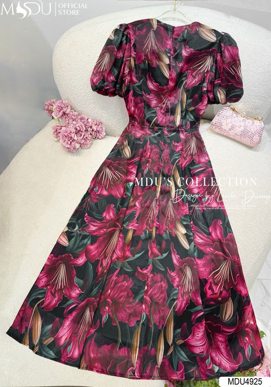 MDU Fashion ra mắt MDU4925 – thiết kế mang đậm chất nghệ thuật với họa tiết hoa lily đỏ trầm nổi bật trên nền đen bí ẩn. Chất tơ óng cao cấp mỏng nhẹ, bắt sáng mềm mại kết hợp cùng lớp lót lụa Habutai tạo nên tổng thể vừa sang trọng vừa thoáng mát. Mỗi chi tiết đều được chăm chút kỹ lưỡng, mang đến cho nàng vẻ đẹp thanh lịch nhưng vẫn cuốn hút trong từng khoảnh khắc.