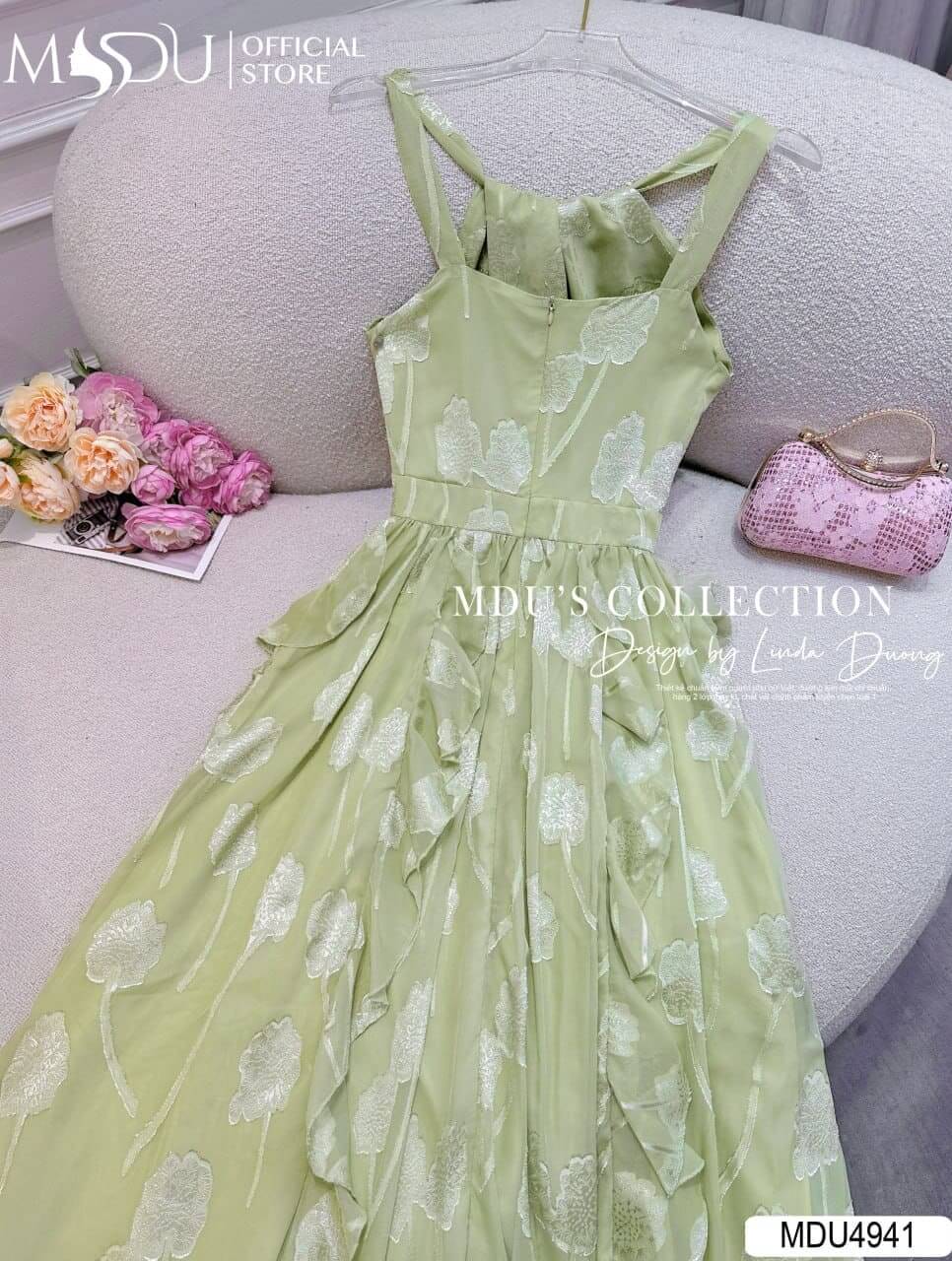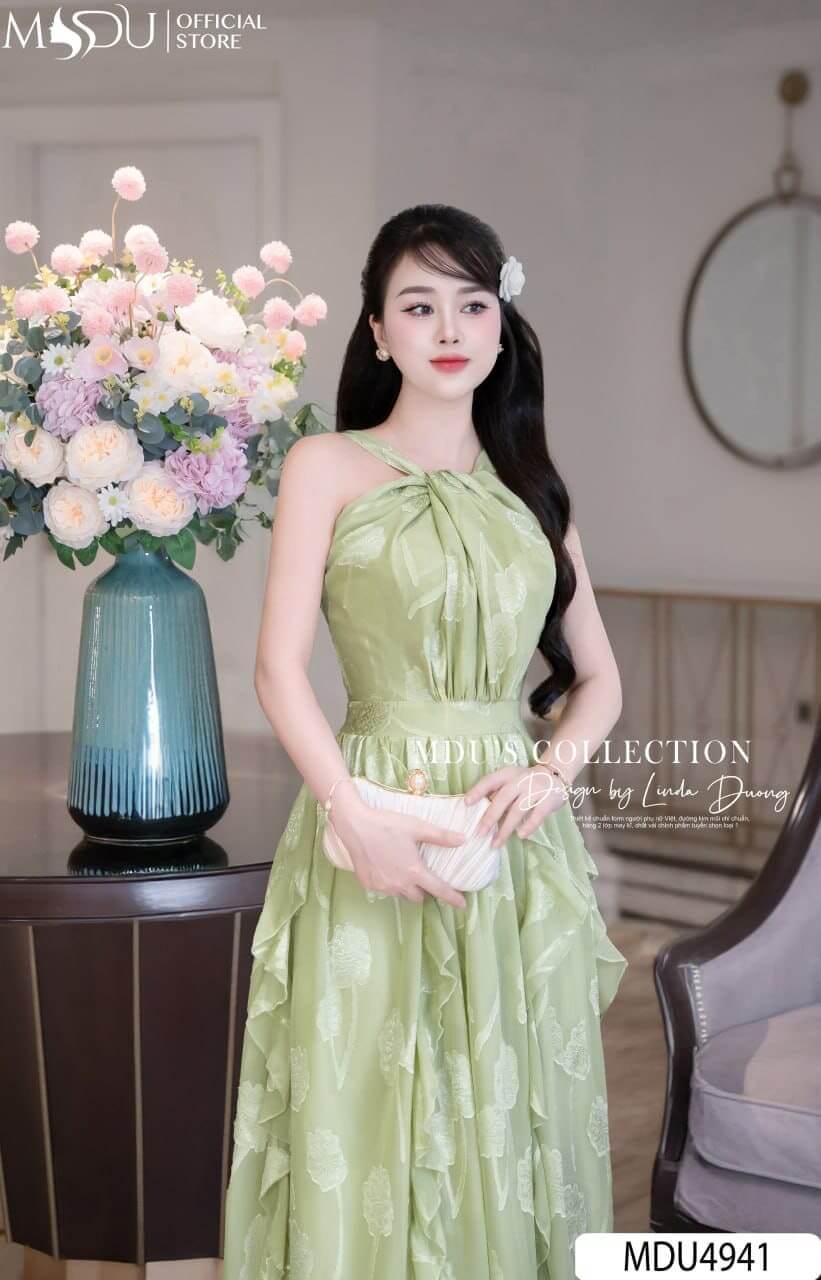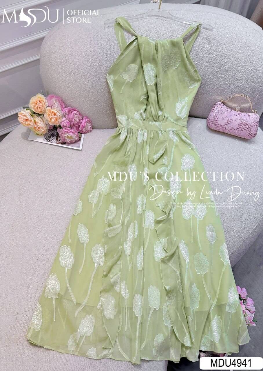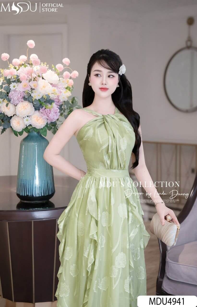 MDU Fashion hân hạnh ra mắt thiết kế MDU4941 – sự kết hợp hài hòa giữa chất liệu tơ Silk cao cấp và phom dáng duyên dáng, mang đến vẻ ngoài yêu kiều, nhẹ nhàng mà vẫn đầy khí chất. Cổ đan chéo mềm mại ôm gọn vai và cổ, giúp tôn lên đường nét nữ tính thanh lịch. Dáng váy dài xòe nhẹ, chiết eo cao tạo hiệu ứng vóc dáng cân đối, dễ mặc trong nhiều hoàn cảnh khác nhau. Họa tiết dệt nổi được xử lý tinh tế, hiện lên ngọt ngào khi có ánh sáng chiếu vào – là điểm nhấn đầy nghệ thuật cho tổng thể thiết kế.