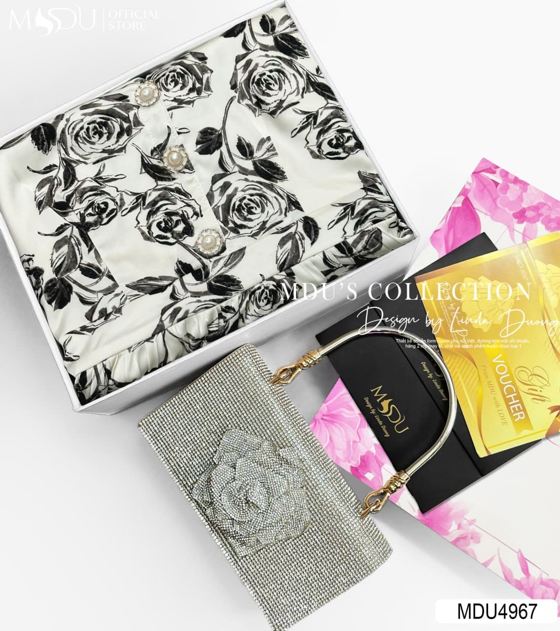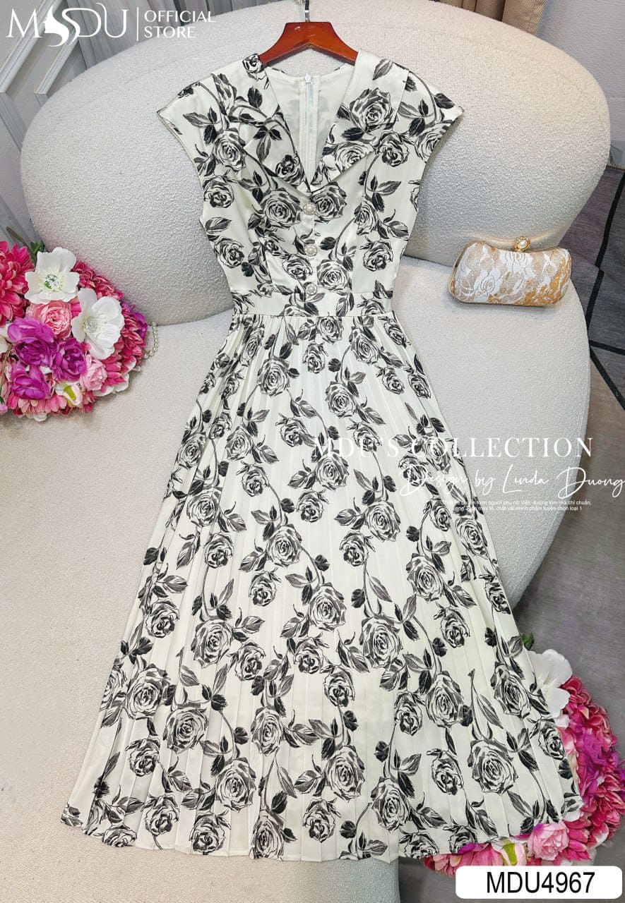 MDU Fashion hân hạnh ra mắt thiết kế MDU4967 – sự kết hợp hài hòa giữa chất liệu cao cấp, phom dáng tinh tế và họa tiết độc đáo mang đậm dấu ấn hiện đại. Họa tiết hoa hồng đen trên nền trắng ngà sang trọng không chỉ tôn lên vẻ đẹp quý phái mà còn làm nổi bật cá tính tinh tế của người mặc.