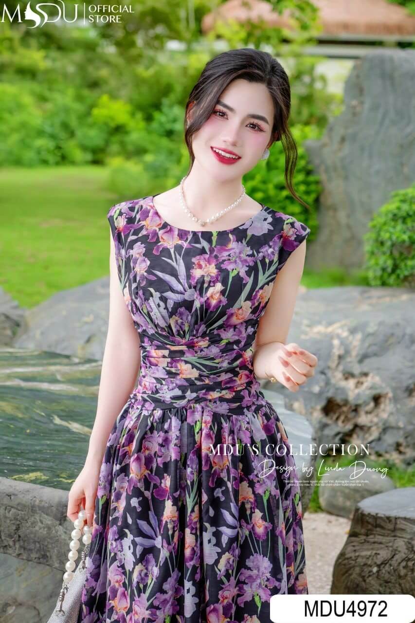 MDU Fashion trân trọng giới thiệu thiết kế MDU4972 là lời thì thầm của mùa xuân, tái hiện một khu vườn hoa hồng tím rực rỡ và dịu dàng trên nền chất liệu tơ gân xước cao cấp. Với phom dáng midi xòe nhẹ, phần cổ kín thanh lịch và tay sát nách hiện đại, thiết kế trở thành lựa chọn lý tưởng cho những quý cô yêu sự dịu dàng nhưng vẫn muốn giữ nét chỉn chu nơi công sở hay trong các buổi hẹn quan trọng.