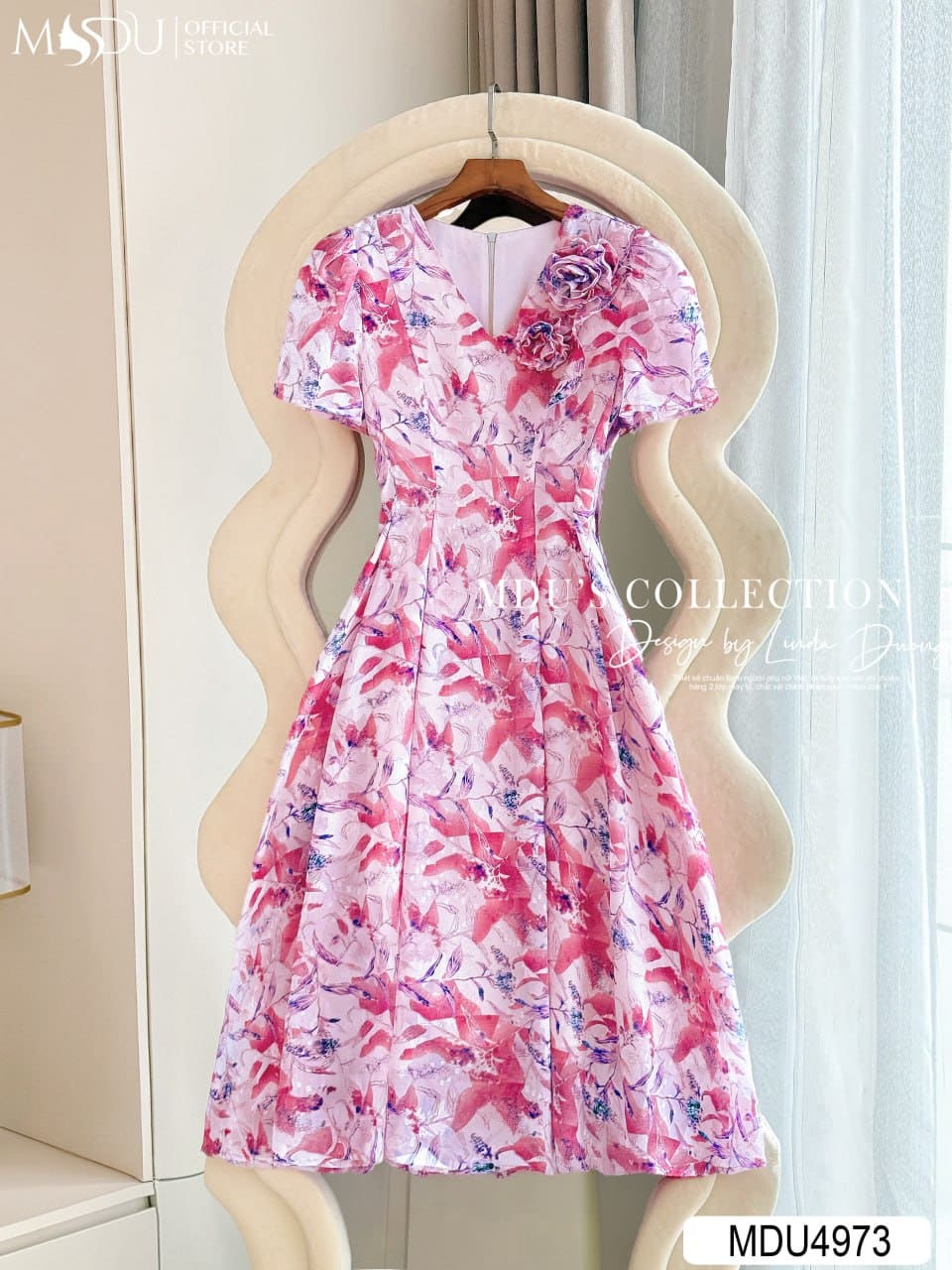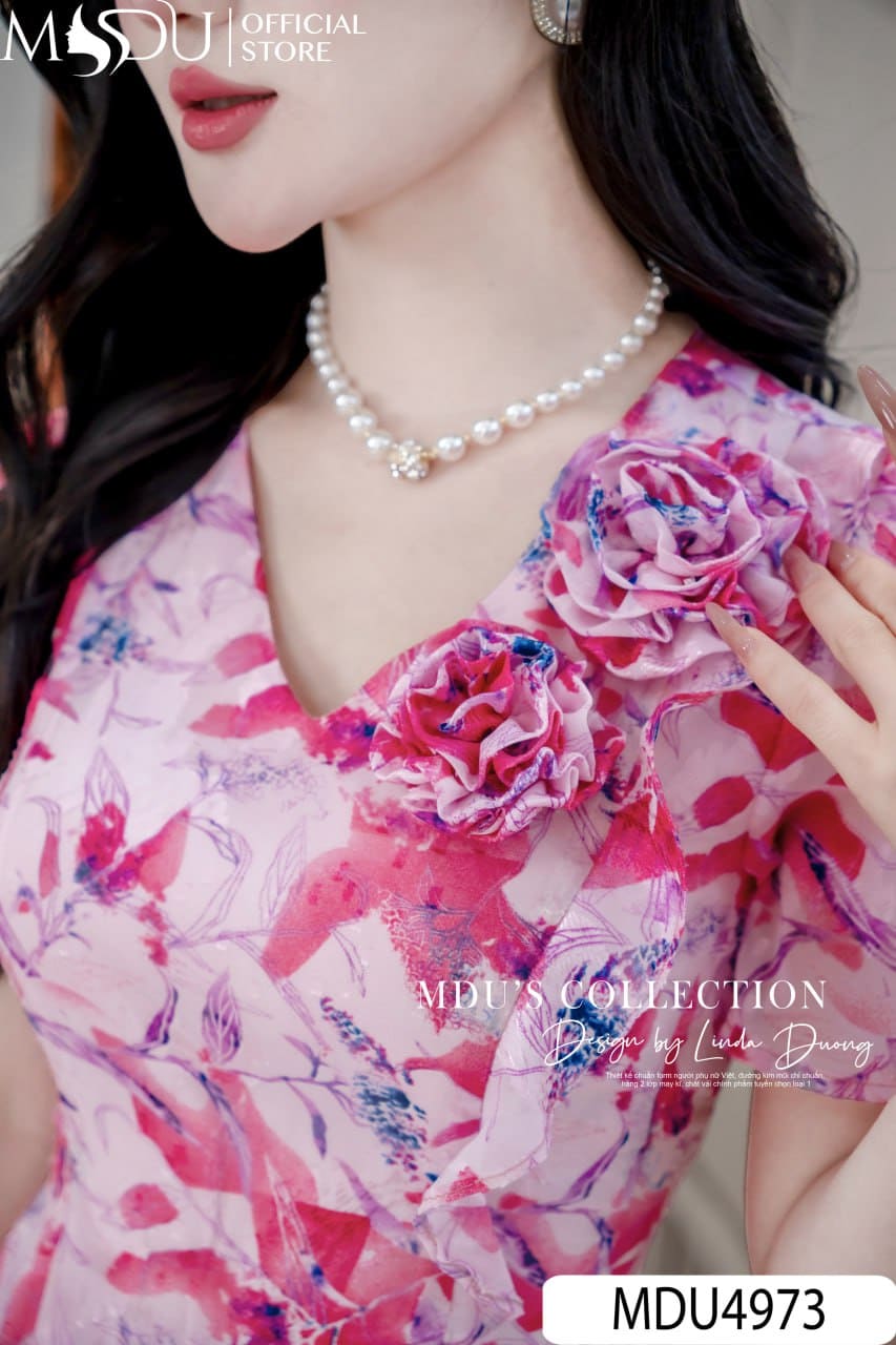 MDU Fashion hân hạnh ra mắt thiết kế MDU4973 – một bản hoan ca của sắc màu và chất liệu, nơi vẻ đẹp mềm mại của tằm ép cao cấp gặp gỡ họa tiết hoa loang rực rỡ. Bề mặt vải dệt hoa chìm tinh tế, không co giãn nhưng đứng phom nhẹ nhàng, giúp giữ phom váy thanh lịch và nhẹ nhàng suốt cả ngày. Lớp lót Habutai mịn mát bên trong tôn thêm trải nghiệm dễ chịu, trong khi các đường may, khóa giấu đều được hoàn thiện tỉ mỉ – tạo nên một tổng thể vừa sang trọng, vừa duyên dáng.