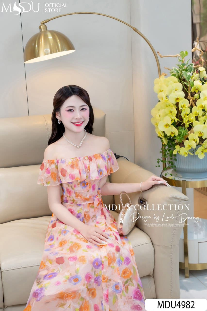 Chiếc váy MDU4982 chinh phục ánh nhìn bằng chất liệu tằm ép vân hoa in hồng đa sắc đầy nghệ thuật. Dáng dài xòe nhẹ chiết eo giúp nàng tôn dáng, trong khi tay bồng biến tấu linh hoạt và hàng cúc bọc chạy dọc thân váy mang đến nét cổ điển nữ tính. Lớp lót Habutai mát dịu hoàn thiện cảm giác thoải mái, tinh tế trong từng đường may.