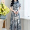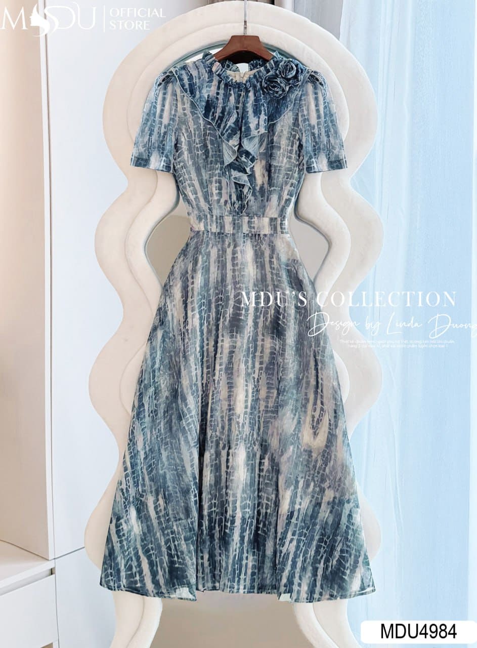 Váy Thiết Kế MDU4984 Tơ Óng Cao Cấp Dáng Xòe Dài Cổ Bèo Đính Hoa Vai Sang Trọng