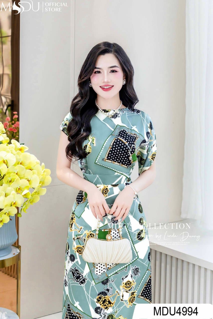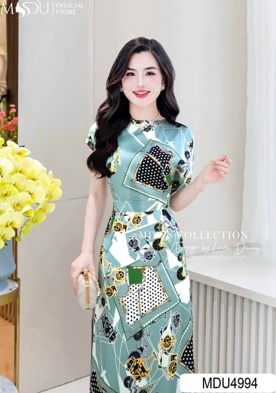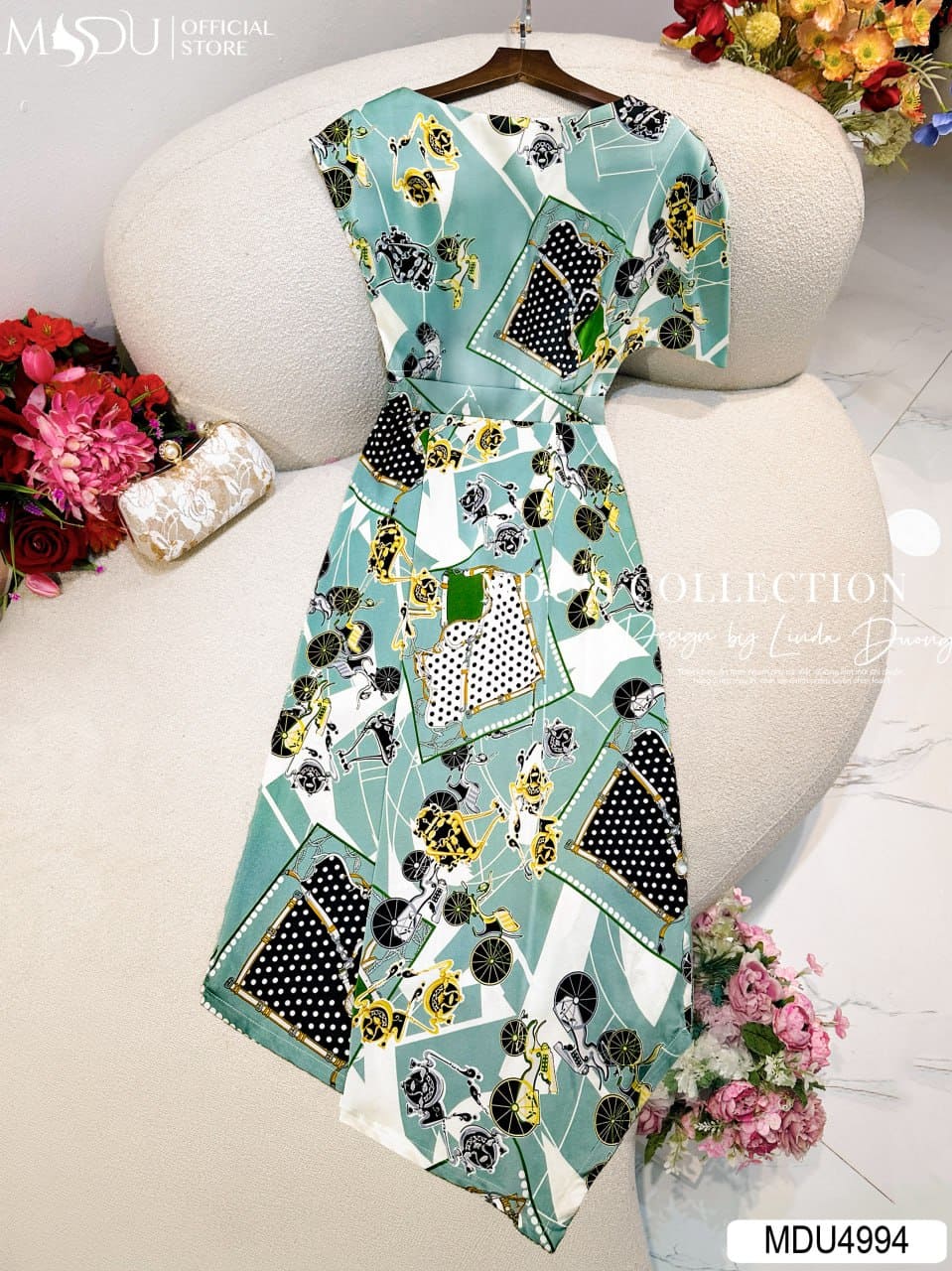 Váy Thiết Kế MDU4994 – Lụa Satin In Họa Tiết, Thanh Lịch Và Cuốn Hút