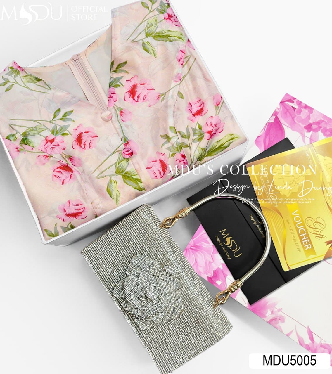 MDU Fashion hân hạnh giới thiệu thiết kế MDU5005 – một tuyệt phẩm kết hợp giữa chất liệu tơ óng ngọc trai cao cấp và vẻ đẹp thanh lịch hiện đại. Từng cánh hoa hồng in sắc nét trên nền vải óng mượt như ánh ngọc, mang đến cảm giác nhẹ nhàng nhưng đầy cuốn hút. Thiết kế dành cho quý cô yêu sự chỉn chu trong từng chi tiết, nhưng vẫn giữ được nét mềm mại, nữ tính rất riêng.