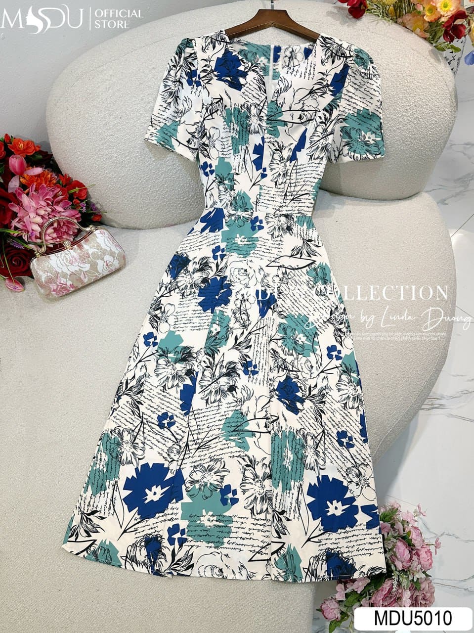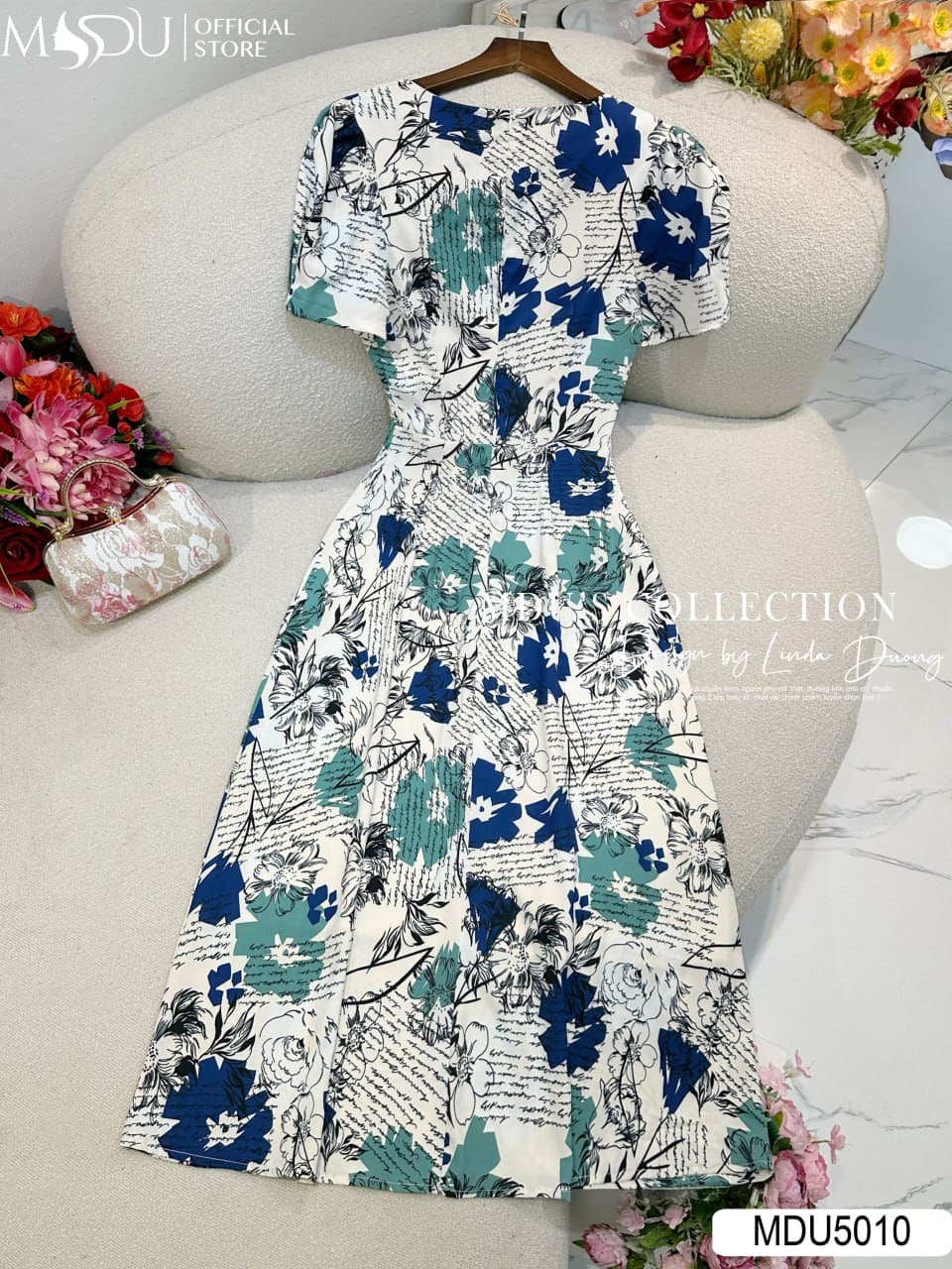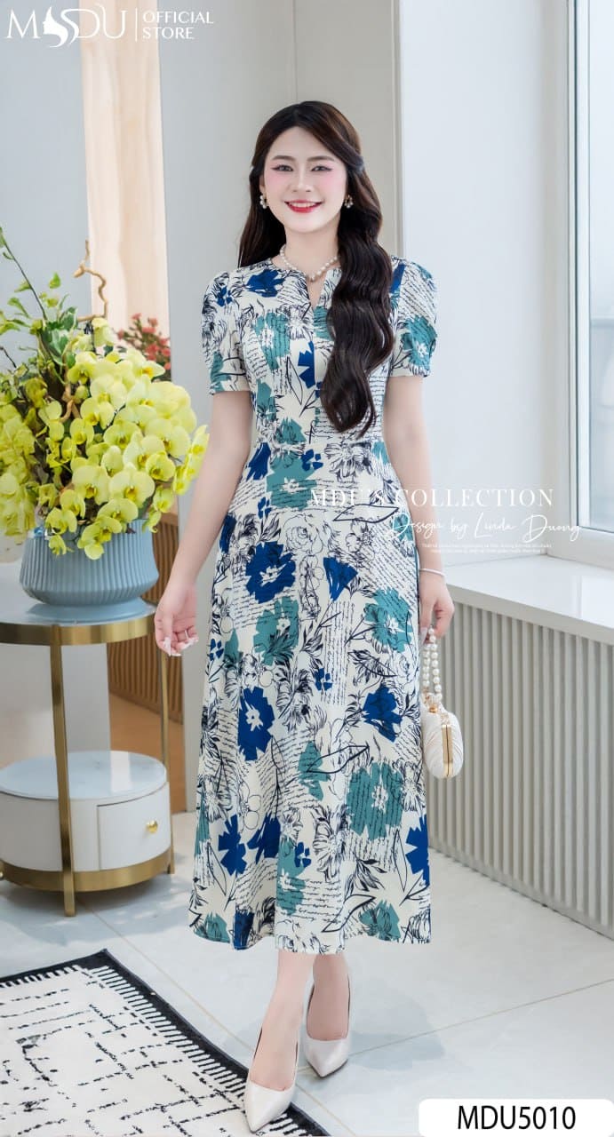 MDU Fashion trân trọng giới thiệu thiết kế MDU5010 – một bản hòa ca dịu dàng giữa họa tiết nghệ thuật và phom dáng bay bổng, dành cho nàng yêu sự thanh lịch, tinh tế nhưng vẫn muốn giữ chất riêng. Sử dụng chất liệu lụa Mango cao cấp với nền kem phối trắng nhẹ nhàng, thiết kế nổi bật với những họa tiết chữ và hoa xanh đen sắc nét, tạo nên tổng thể hài hòa, sang trọng và cuốn hút.