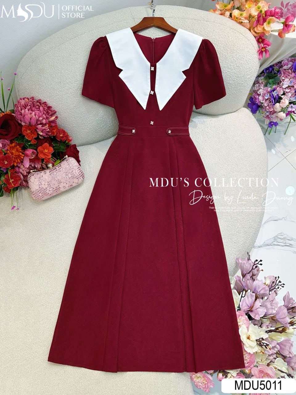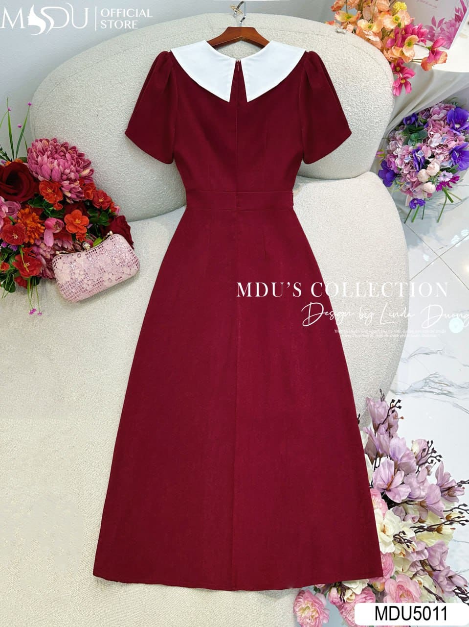 Màu đỏ đô trầm ấm là biểu tượng của sự quyến rũ và đẳng cấp, dễ dàng kết hợp cùng phụ kiện ánh kim hoặc trắng ngọc trai để tạo nên tổng thể cuốn hút. Thiết kế túi ẩn hai bên vừa tiện dụng, vừa giữ trọn nét thanh lịch cho tổng thể. MDU5011 là lựa chọn lý tưởng cho các buổi tiệc, lễ kỷ niệm, hay sự kiện trang trọng khi bạn cần một chiếc váy vừa đủ nổi bật nhưng không phô trương.