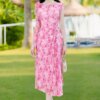 Váy Thiết Kế MDU5016 Tơ Xước Hoa Hồng Loang Dáng Dài Xòe Nhẹ