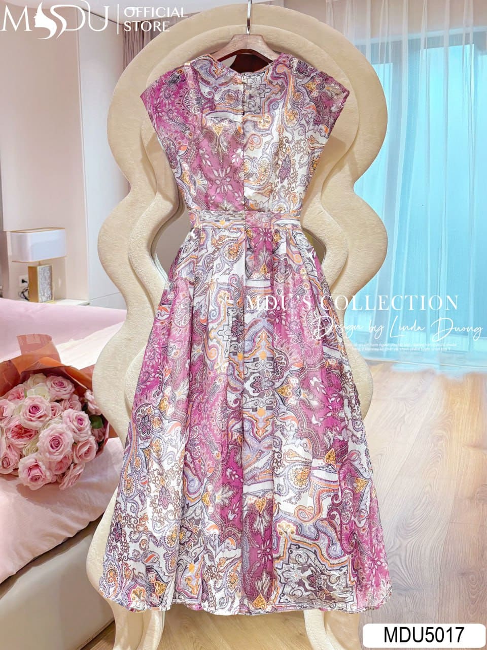 MDU Fashion trân trọng giới thiệu thiết kế MDU5017 – một bản giao hưởng giữa sự nữ tính thanh lịch và hơi thở nghệ thuật đương đại. Với chất liệu tơ xước cao cấp mềm nhẹ, kết hợp họa tiết Paisley màu hồng tím kem đầy chiều sâu, mẫu váy mang đến cảm giác nhẹ nhàng nhưng vẫn đủ sắc sảo để tạo dấu ấn. Kiểu dáng chiết eo cao, xòe nhẹ giúp tôn lên vẻ yêu kiều và uyển chuyển trong từng bước di chuyển – như một vũ điệu lặng lẽ của nàng thơ thành thị.