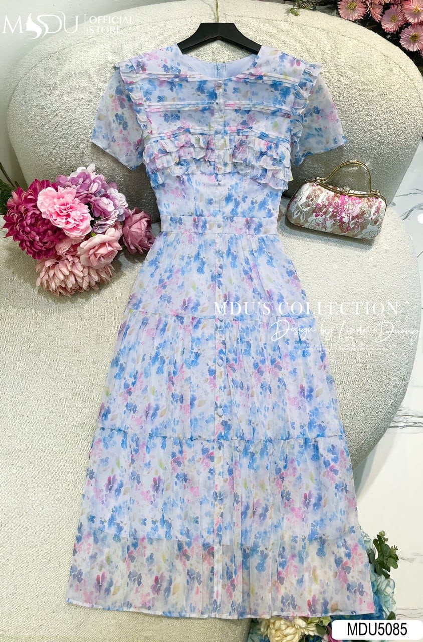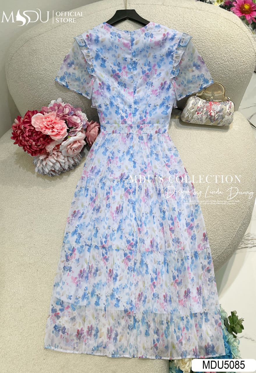 Váy Thiết Kế MDU5085 Tơ Xước Dài Xòe Nhẹ – Họa Tiết Hoa Nhỏ Bay Bổng Và Dịu Mắt