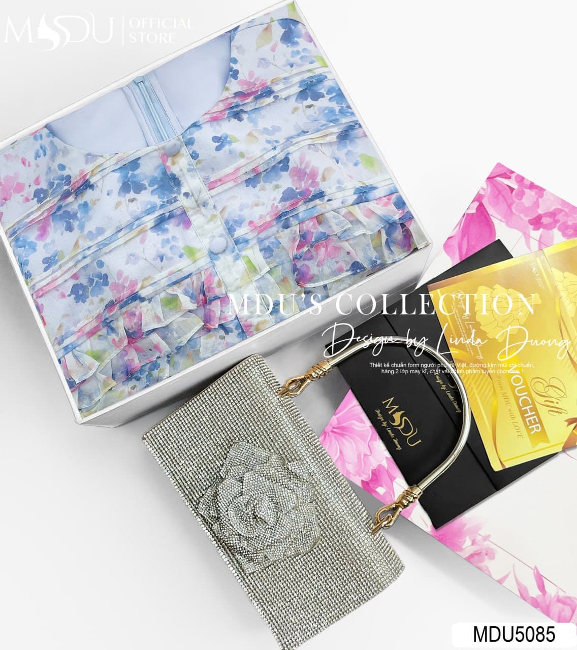 Sự kết hợp hài hòa giữa chất liệu tơ xước tự nhiên, họa tiết hoa nhỏ đa sắc và form dáng cổ điển giúp MDU5085 dễ dàng đồng hành cùng bạn trong nhiều dịp khác nhau – từ những buổi dạo phố cuối tuần, bữa tiệc nhẹ ngoài trời đến những buổi gặp gỡ thân mật. Đây là thiết kế lý tưởng dành cho những cô gái yêu sự nhẹ nhàng, bay bổng mà vẫn muốn giữ nét lịch thiệp, thanh tao trong từng khoảnh khắc.