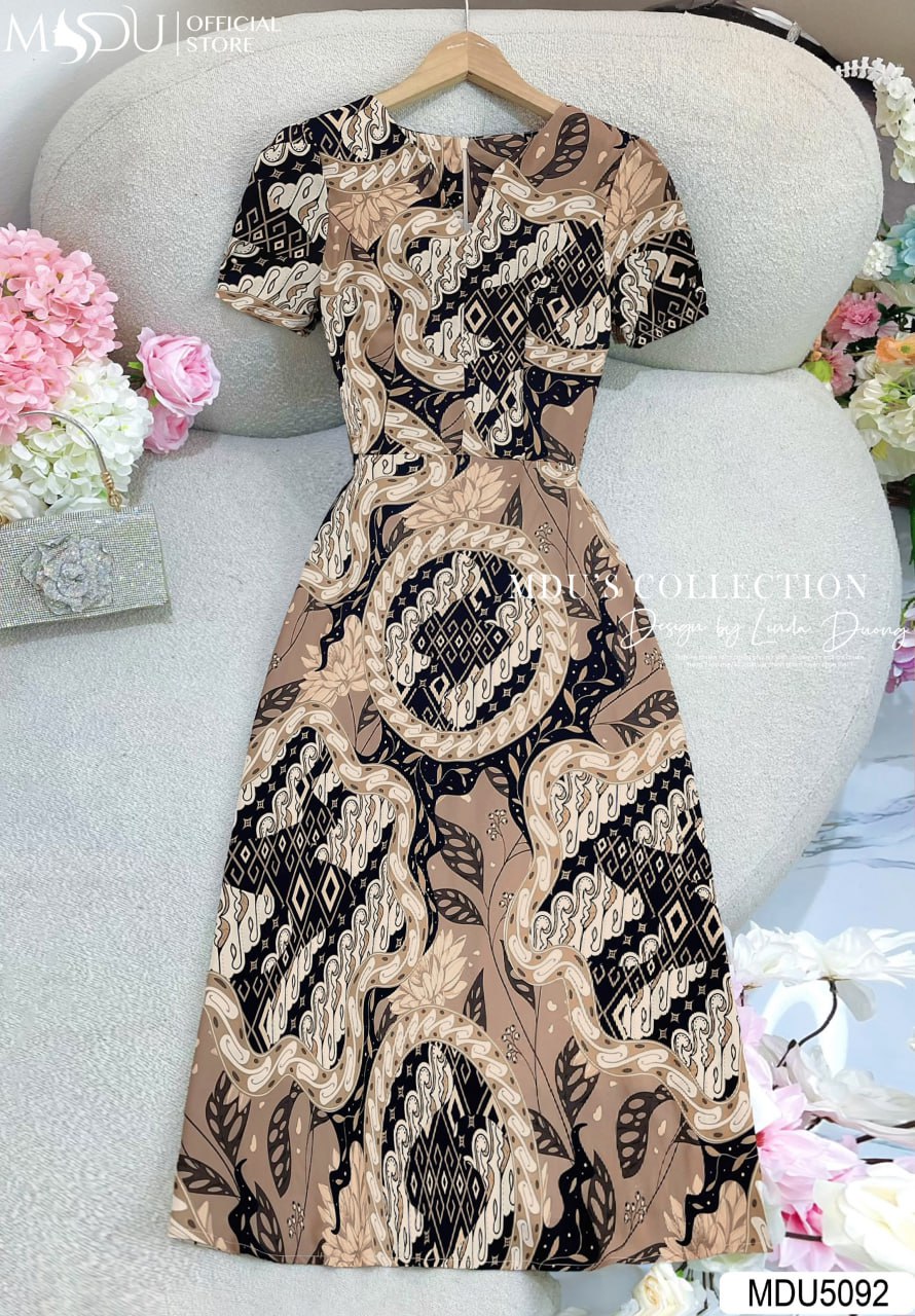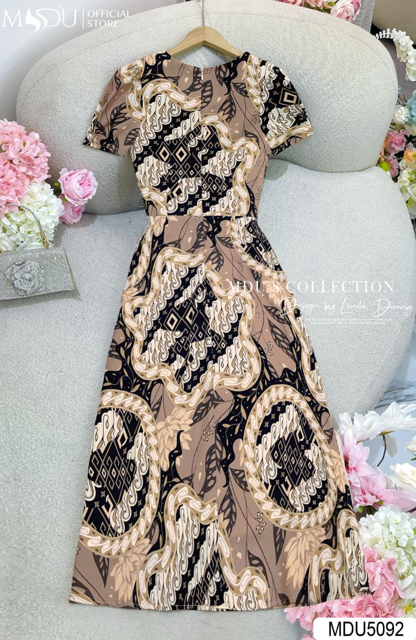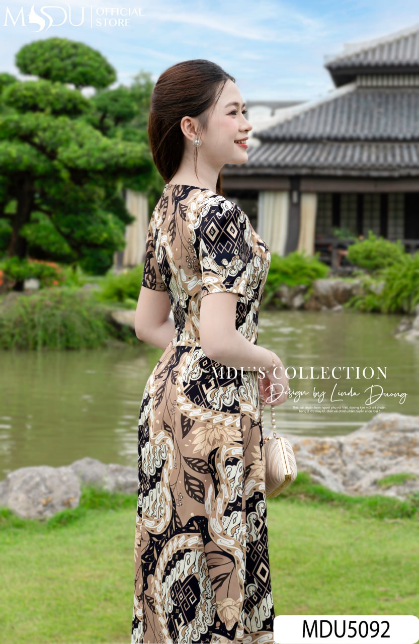 MDU Fashion trân trọng giới thiệu thiết kế MDU5092 – một tuyệt phẩm thời trang mang đậm tinh thần quý phái cổ điển hòa quyện cùng đường nét hiện đại. Được tạo nên từ chất liệu lụa mango cao cấp mềm mát, mẫu váy nổi bật với họa tiết Baroque độc đáo kết hợp chuỗi ngọc và dây xích ánh kem – đen in sắc sảo trên nền nâu nhạt phối kem đối lập đầy ấn tượng. Từng chi tiết được sắp đặt khéo léo để làm bật lên phong cách quý phái, cá tính mà vẫn giữ trọn nét thanh lịch cho người mặc.
