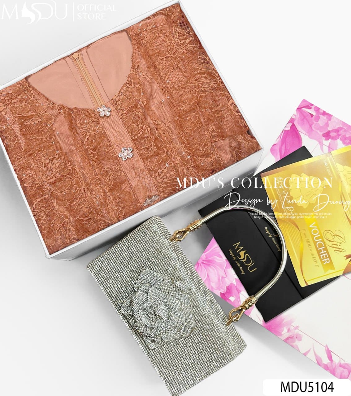 Với sắc nâu cam đất hiện đại pha chút hoài cổ, MDU5104 là lựa chọn hoàn hảo cho các buổi tiệc chiều, đám cưới, sự kiện nghệ thuật hoặc những dịp cần sự chỉn chu mà vẫn giữ được dấu ấn cá nhân. Mẫu váy này không chỉ là trang phục, mà còn là sự tôn vinh vẻ đẹp nữ tính – tự nhiên, tinh tế và luôn tỏa sáng theo một cách đầy nội lực.