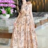 Voan ép cao cấp nhẹ và thoáng, tạo độ rũ uyển chuyển theo từng bước đi. Họa tiết hoa nâu in trên nền nude mang nét duyên dáng, dễ phối cùng nhiều kiểu phụ kiện. Đường may chỉn chu và lớp lót mát nhẹ bên trong đảm bảo sự thoải mái suốt cả ngày.