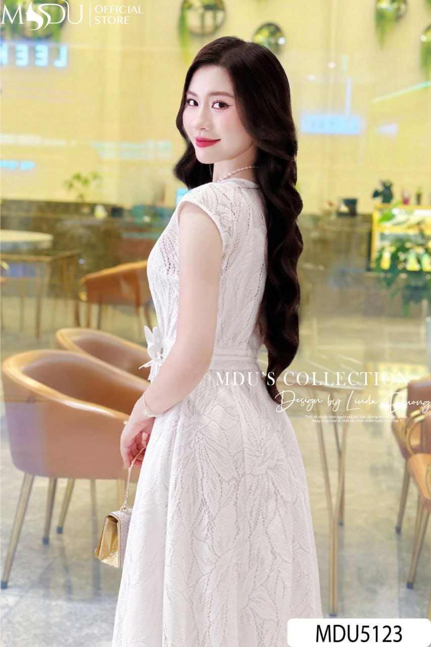 MDU Fashion trân trọng giới thiệu mẫu đầm thiết kế MDU5123 – hiện thân của vẻ đẹp thanh lịch, kín đáo và đầy cuốn hút. Thiết kế được tạo nên từ chất liệu ren mềm cao cấp, với bề mặt họa tiết ren lá nổi nhẹ, mang đến hiệu ứng thị giác tinh tế và đầy chiều sâu. Gam màu trắng kem trang nhã giúp tôn lên vẻ đẹp tự nhiên của làn da, khiến tổng thể trang phục trở nên thuần khiết mà vẫn đậm chất thời trang hiện đại.