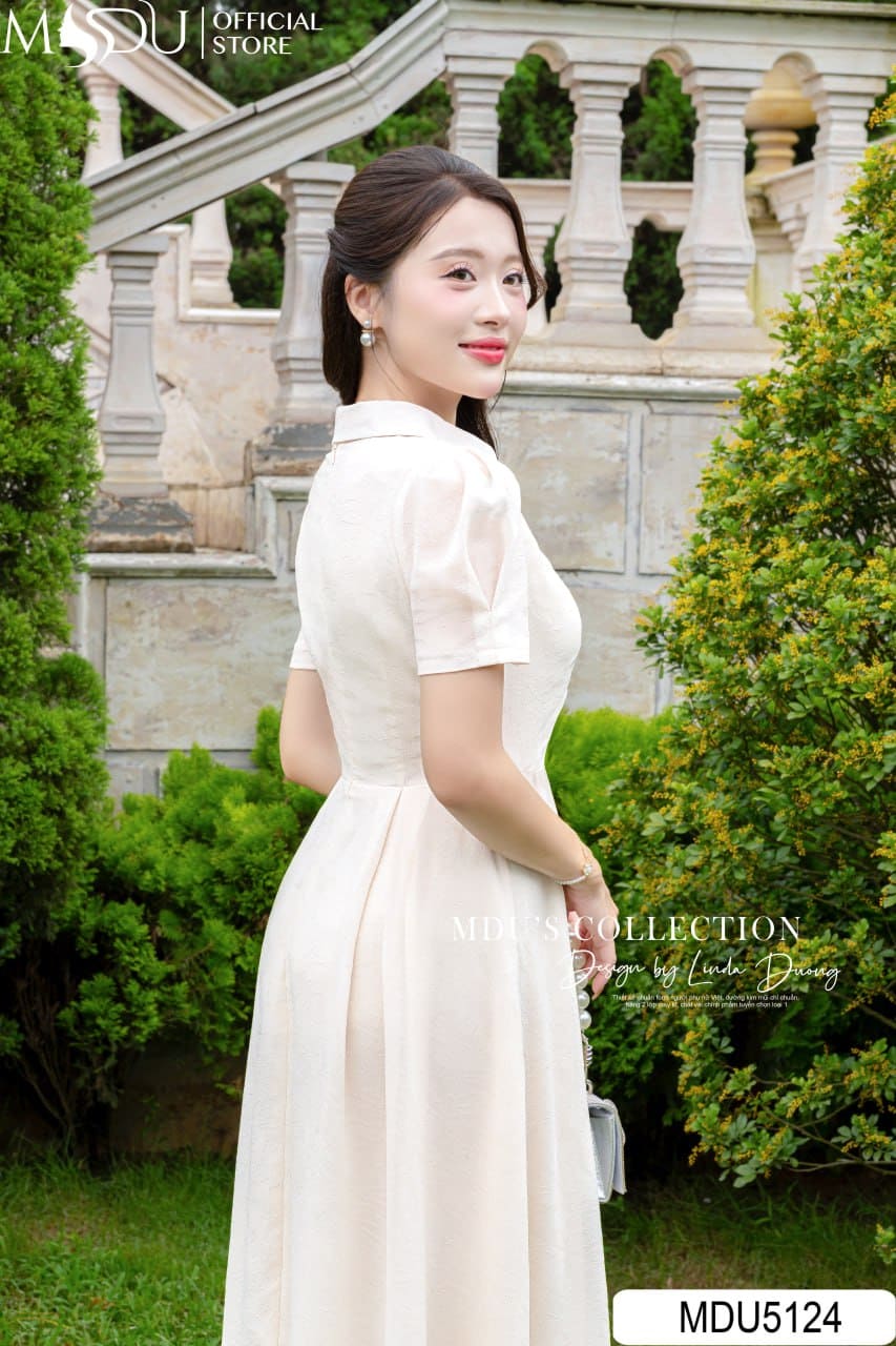 MDU Fashion hân hạnh giới thiệu thiết kế MDU5124 – một mẫu váy mang vẻ đẹp tinh tế, thanh lịch và ứng dụng cao, phù hợp cho nhiều hoàn cảnh từ công việc đến dạo phố. Được chế tác từ chất liệu tơ cát vân đá cao cấp với bề mặt vân nhẹ độc đáo, váy MDU5124 tạo hiệu ứng thị giác sang trọng mà vẫn giữ được sự mềm mại và thoáng nhẹ khi mặc. Sự tối giản về họa tiết kết hợp cùng gam màu kem nhã nhặn giúp tôn lên thần thái thanh lịch của người phụ nữ hiện đại.