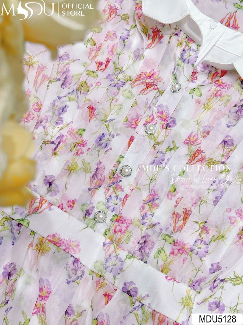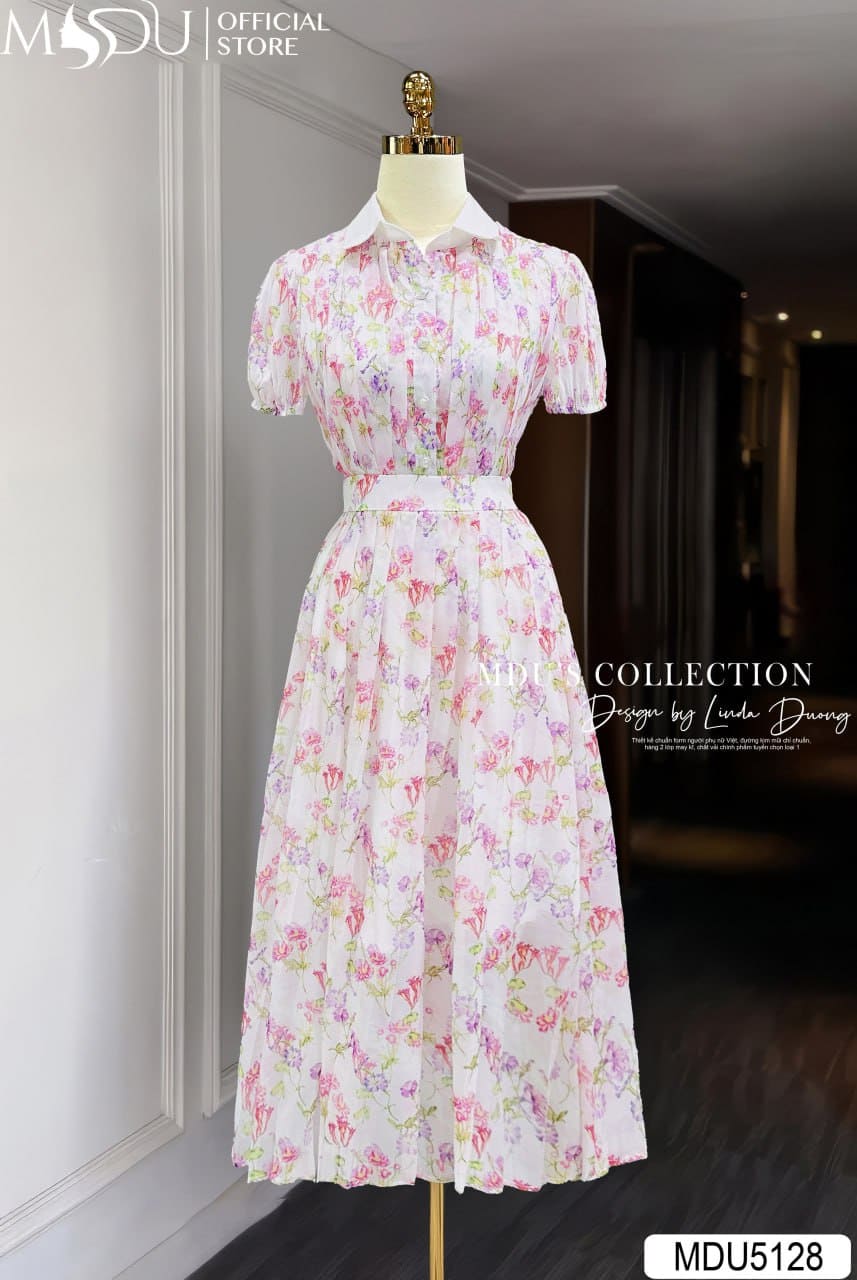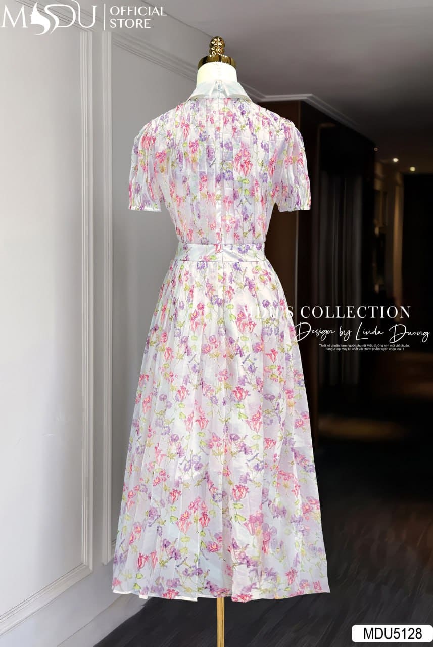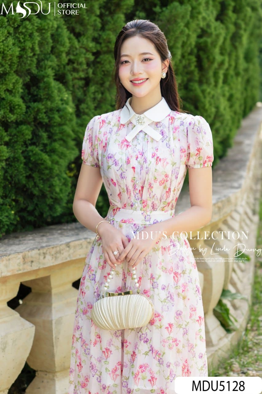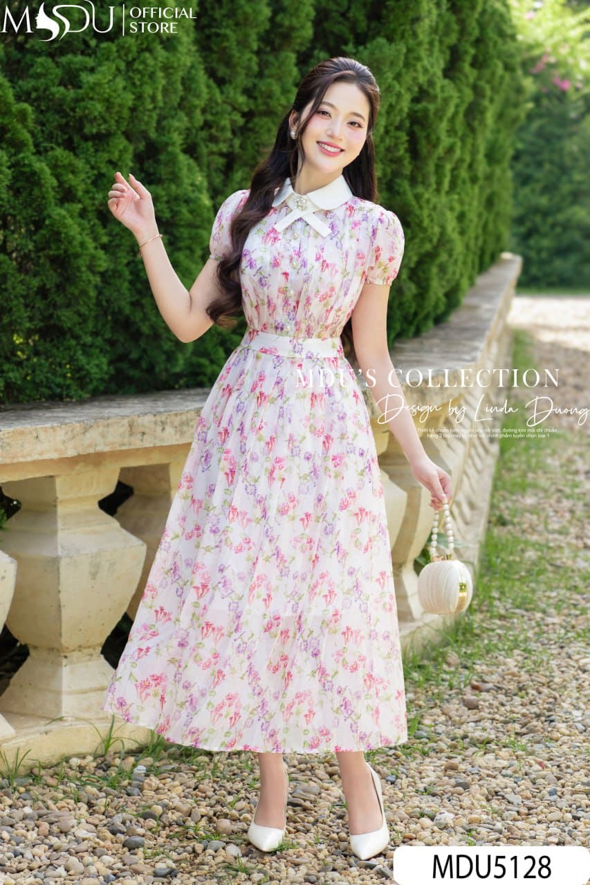 MDU Fashion trân trọng ra mắt thiết kế MDU5128 – mẫu váy liền mang tinh thần trẻ trung, bay bổng nhưng vẫn đậm chất thanh lịch, được sáng tạo dành riêng cho những cô nàng yêu sự dịu dàng, trang nhã. Lấy cảm hứng từ vườn hoa mùa hè khoe sắc dưới nắng sớm, thiết kế nổi bật với chất liệu tơ óng cao cấp phối họa tiết hoa in cố định, khéo léo tô điểm bằng bảng màu pastel gồm hồng phấn, tím lavender và xanh mint hài hòa trên nền kem nhẹ.