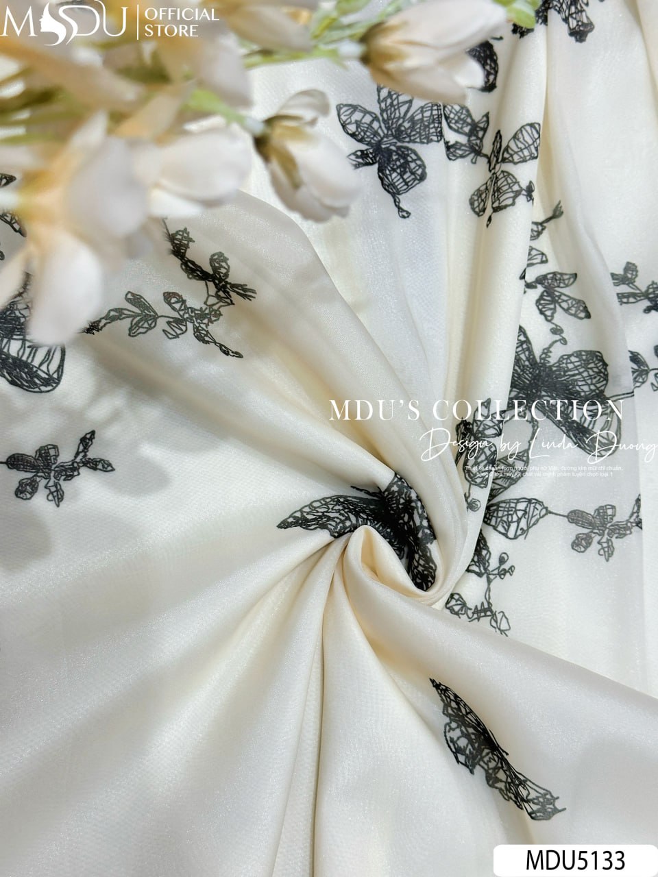 Lụa Mango – Tơ Óng Trắng – Hoa Bướm In Nổi – Lót Mịn Mát