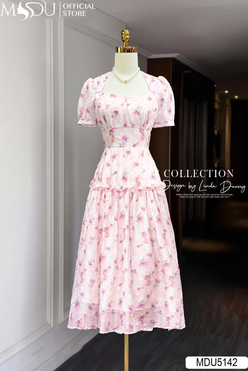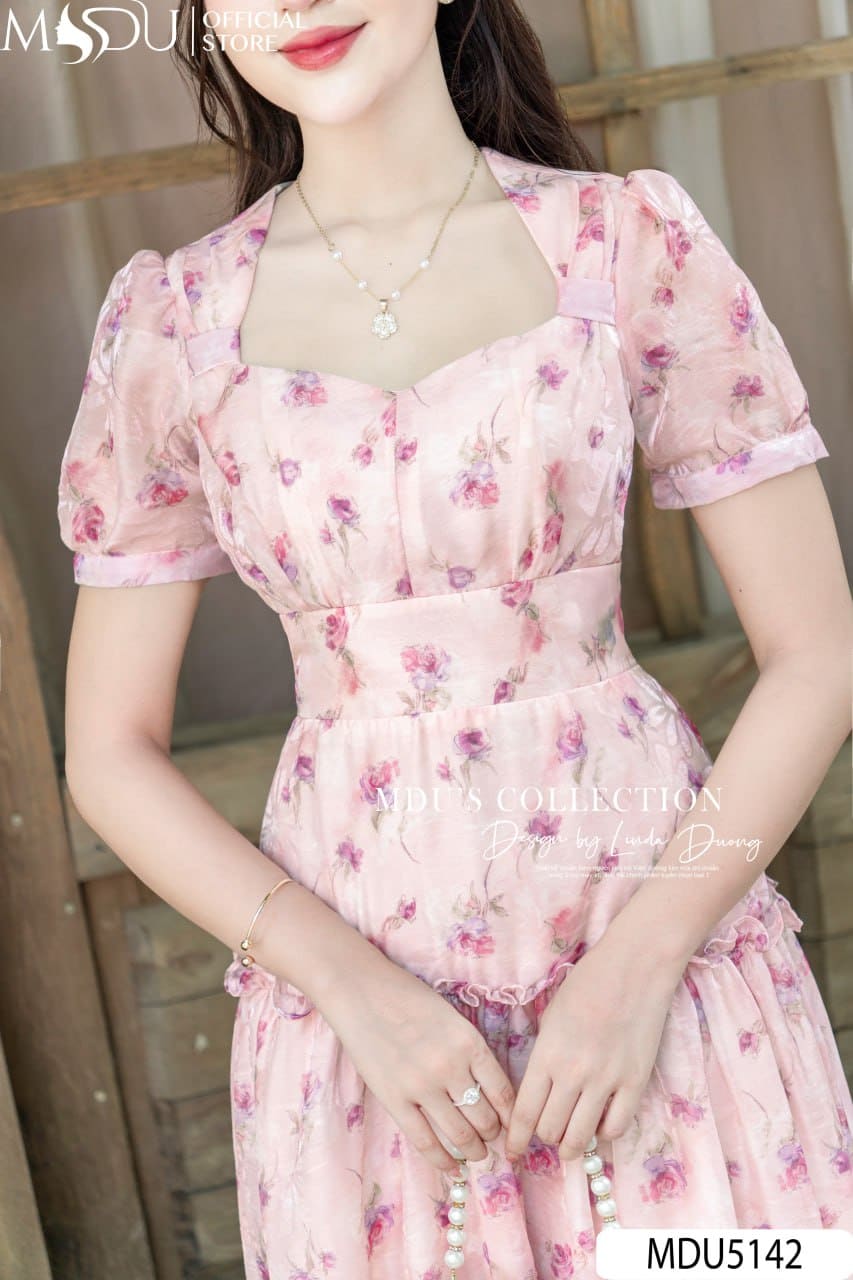 Tông hồng phấn dịu nhẹ kết hợp cùng hoa nhí in nổi khiến MDU5142 trở thành lựa chọn hoàn hảo cho những buổi tiệc nhẹ, gặp gỡ thân mật, tiệc sinh nhật hay các buổi chụp hình lãng mạn. Đây không chỉ là một mẫu váy – mà còn là sự thể hiện của vẻ đẹp nữ tính hiện đại, mềm mại, yêu kiều nhưng vẫn đầy khí chất riêng biệt của người phụ nữ hôm nay.