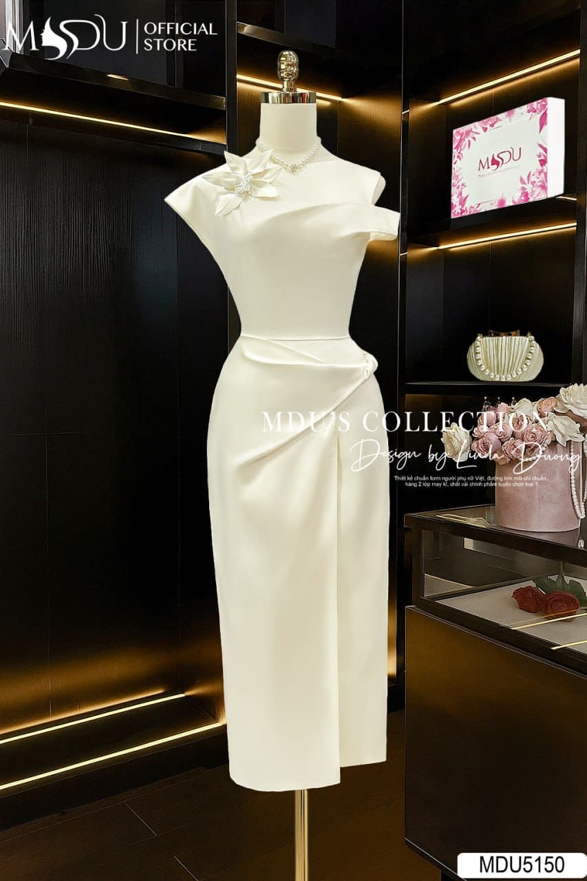 MDU Fashion trân trọng giới thiệu thiết kế MDU5150 – mẫu váy mang vẻ đẹp sang trọng, tinh tế và đầy tính nghệ thuật dành cho những buổi tiệc trang trọng. Được chế tác từ chất liệu lụa Twist satin vân cao cấp, bề mặt mềm mịn cùng ánh bóng nhẹ, chiếc váy tạo nên hiệu ứng uyển chuyển và quý phái trong từng bước di chuyển. Điểm nhấn hoa 3D đính vai tinh xảo khiến tổng thể trở nên độc đáo và cuốn hút, gợi nhắc nét đẹp nữ tính hiện đại.