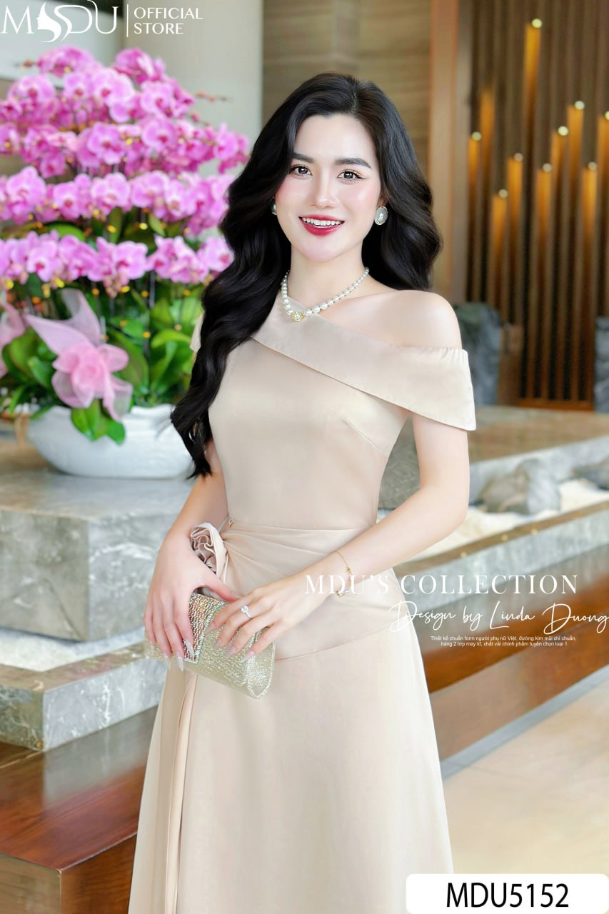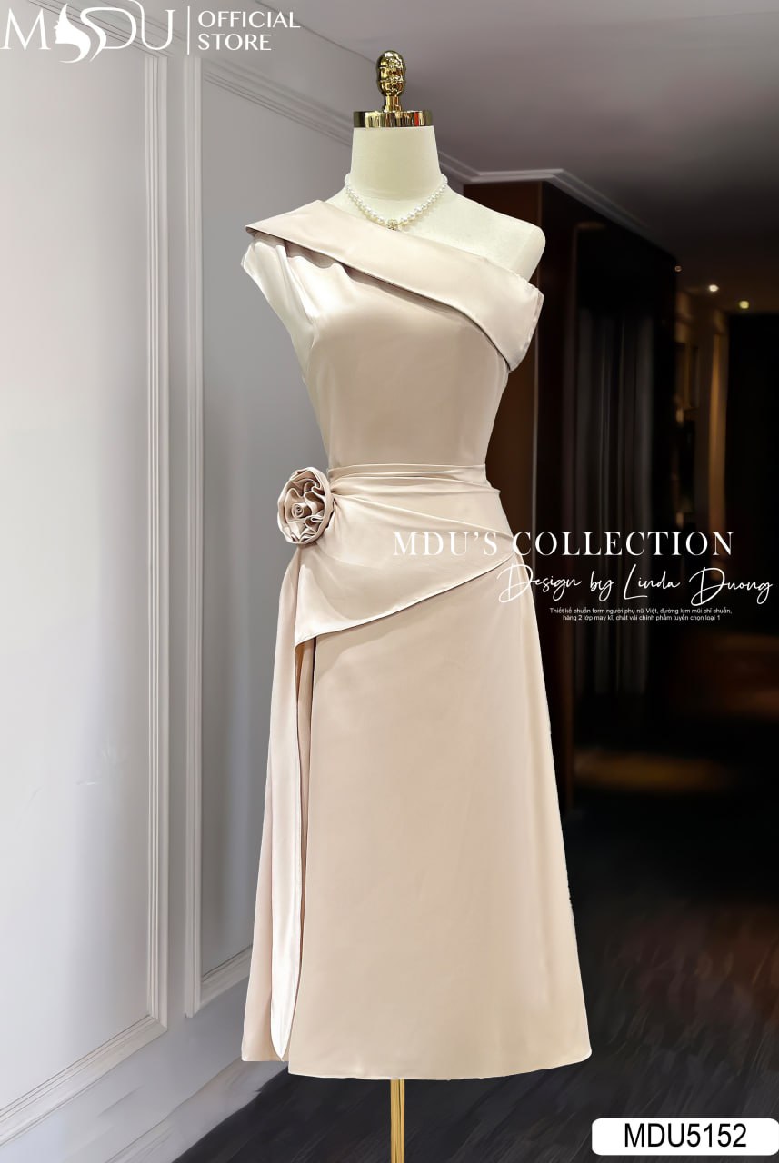 Váy Thiết Kế MDU5152 Lụa Twist Satin Be Champagne Dáng Ôm Nhẹ Thanh Lịch Và Sang Trọng