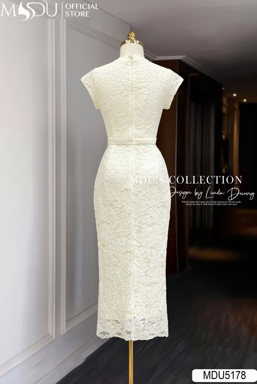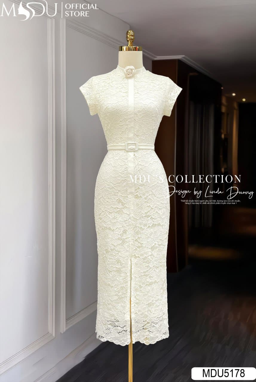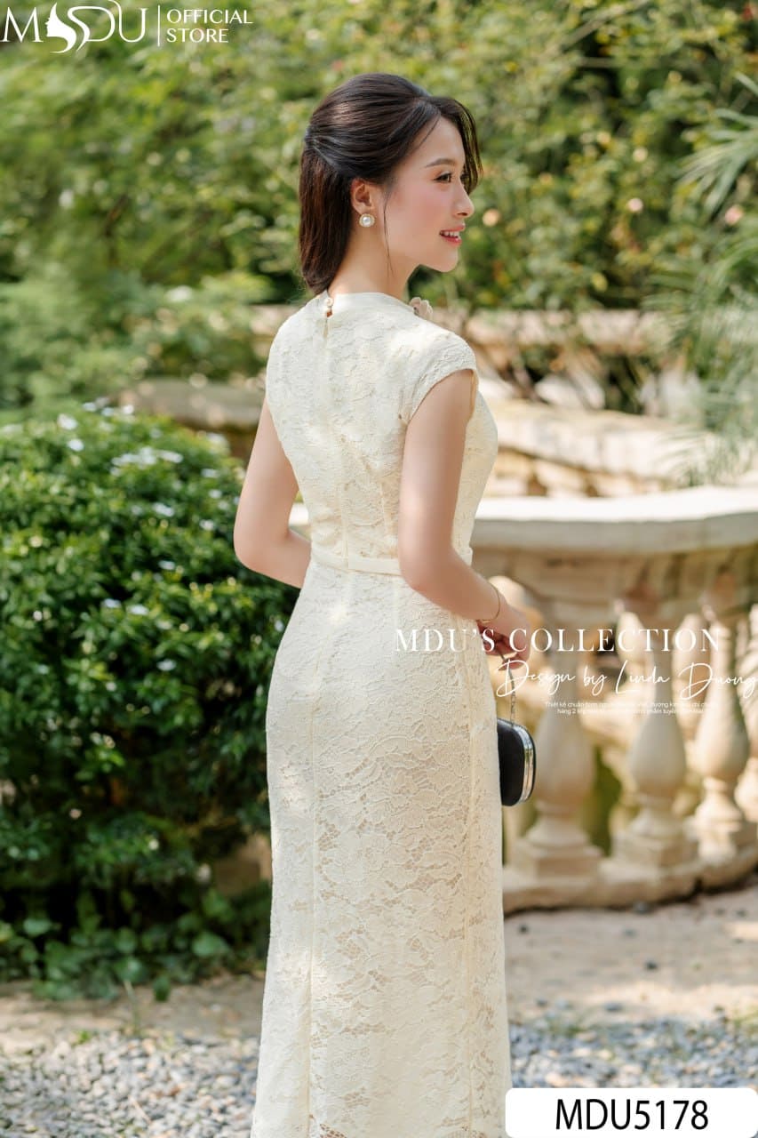 MDU Fashion hân hạnh ra mắt thiết kế MDU5178 – sự hòa quyện tinh tế giữa chất liệu ren mềm cao cấp và phom dáng ôm dài sang trọng, mang đến hình ảnh quý phái và đầy nữ tính cho người mặc. Gam màu kem nhã nhặn được phủ họa tiết ren hoa nổi toàn thân, tạo chiều sâu thị giác và tôn lên vẻ thanh tao, thu hút mọi ánh nhìn.