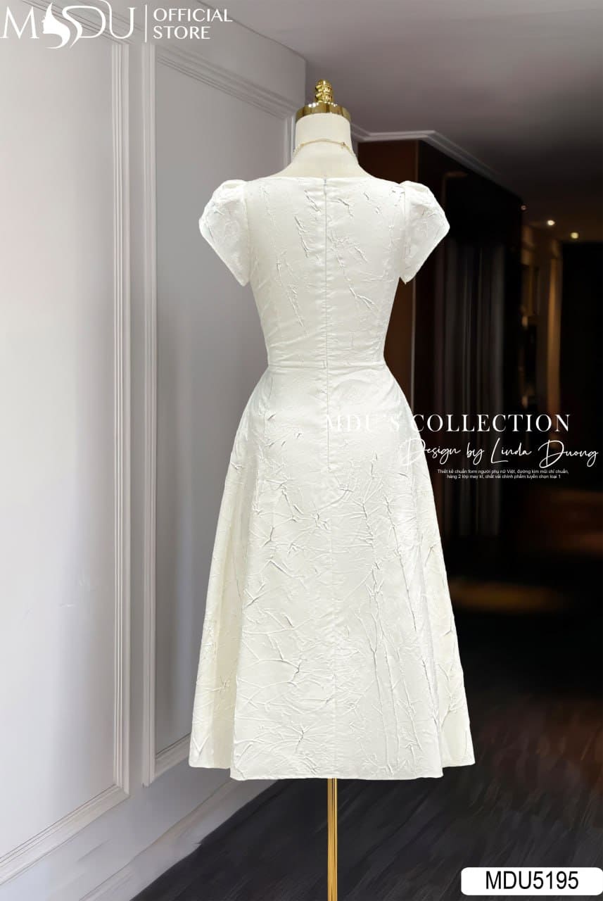 Gam trắng kem trang nhã của MDU5195 khiến người mặc luôn toát lên vẻ thanh thuần và nhã nhặn. Đây là lựa chọn hoàn hảo cho những buổi tiệc nhẹ, các cuộc gặp gỡ thân mật hay những buổi dạo phố cần sự chỉn chu và duyên dáng. MDU5195 không chỉ là một chiếc váy, mà còn là sự hòa quyện giữa nét cổ điển và hiện đại, tôn vinh vẻ đẹp tự tin và thanh lịch của phái đẹp.