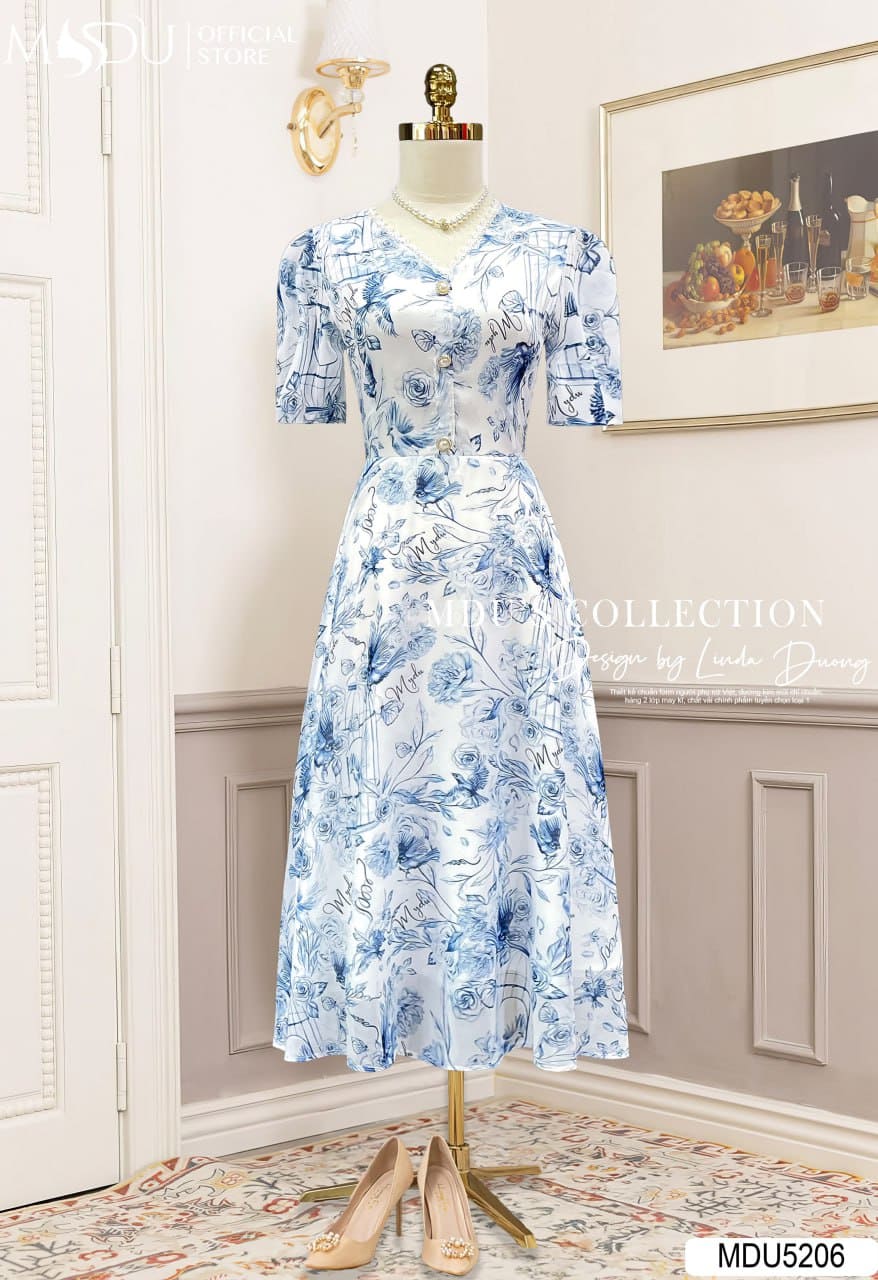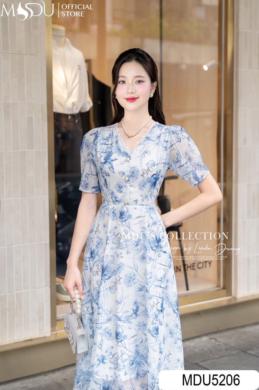 MDU Fashion hân hạnh giới thiệu thiết kế MDU5206 – một mẫu váy mang vẻ đẹp nhẹ nhàng, tinh tế và đầy tính nghệ thuật. Lấy cảm hứng từ sắc trắng xanh thanh khiết, mẫu váy trở nên nổi bật nhờ chất liệu tơ óng cao cấp, mang đến hiệu ứng ánh sáng dịu nhẹ và sự uyển chuyển mềm mại trong từng chuyển động. Họa tiết hoa in phối ren được xử lý khéo léo, tạo nên nét duyên dáng nữ tính mà vẫn hiện đại, tinh khôi.