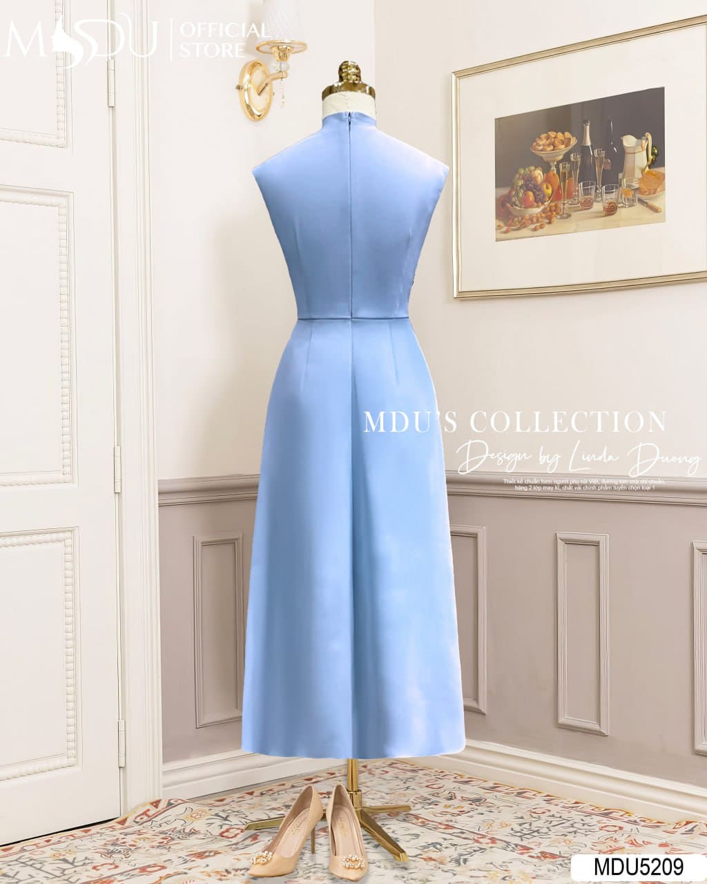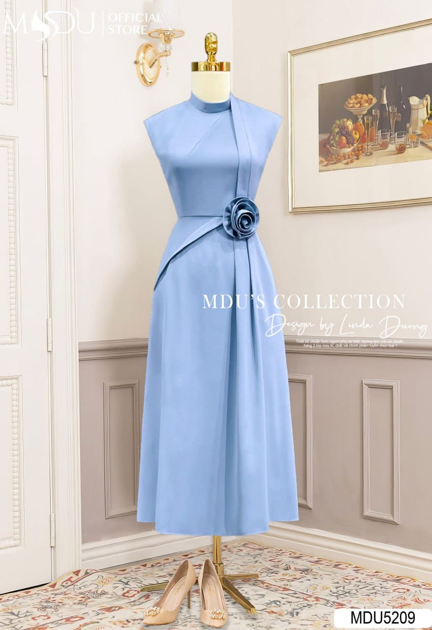 Sắc xanh pastel nhẹ nhàng giúp MDU5209 trở thành lựa chọn hoàn hảo cho những buổi tiệc, sự kiện trang trọng hay khoảnh khắc chụp hình đáng nhớ. Mẫu váy này không chỉ tôn vinh nét đẹp dịu dàng, nữ tính mà còn thể hiện sự tự tin và phong thái hiện đại của người phụ nữ.