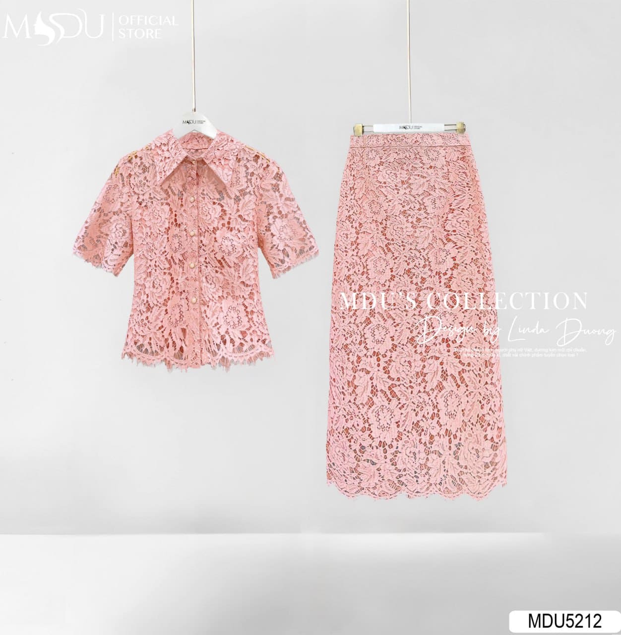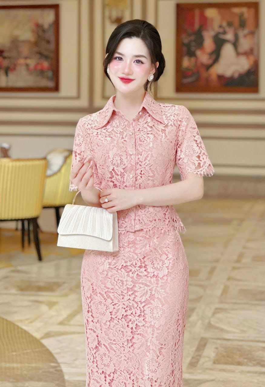 MDU Fashion trân trọng giới thiệu thiết kế MDU5212 – một set đồ mang hơi thở tinh tế và nữ tính, hòa quyện giữa vẻ thanh lịch công sở và sự sang trọng cho những dịp đặc biệt. Gam hồng phấn dịu dàng kết hợp cùng ren Hàn cao cấp hoa nổi tinh xảo, giúp người mặc toát lên vẻ ngọt ngào mà vẫn sang trọng. Thiết kế áo sơ mi cúc thật hai lớp phối cùng chân váy dài hai lớp có khóa sau tạo tổng thể hài hòa, thanh lịch và vô cùng cuốn hút.